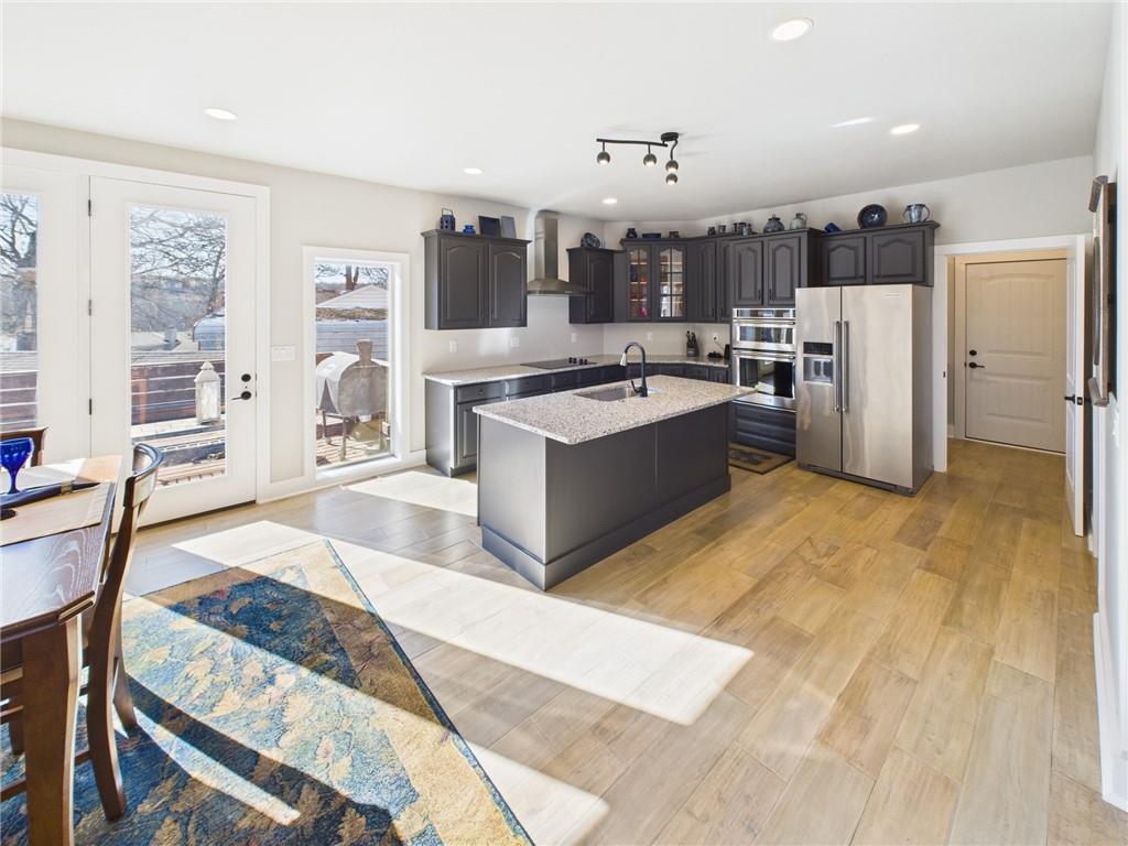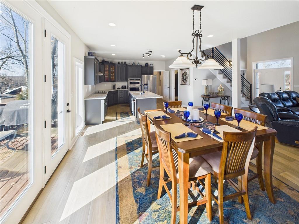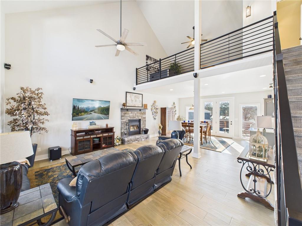 Built in 2022 and situated on approximately 0.34 acres, this beautiful 3-bedroom, 2-bath home is located in the desirable Paradise Point subdivision. (3rd bedroom does not have a window) The seller truly spared no expense with upgrades throughout the home. The entry welcomes you into an open floor plan with soaring cathedral ceilings and large windows that flood the home with natural light. The living room is cozy and spacious with a wood-burning fireplace sitting perfectly between the living and dining rooms, creating a warm and inviting atmosphere. The dining room features tall, elegant windows and a French door that opens to a large deck and flows seamlessly into the spacious kitchen, making it ideal for entertaining. The kitchen offers an abundance of tall cabinetry, large island with additional seating and elegant granite countertops. Just off the kitchen is a large pantry/laundry room with granite countertops and additional storage. The spacious main-level primary bedroom features a full bath with granite countertops and a tiled walk-in shower. Upstairs, you’ll find a loft overlooking the main living area, two spacious bedrooms, and a large bathroom featuring granite countertops and a dedicated makeup vanity. One upstairs bedroom includes pull-down attic access for extra storage. The attached garage is approximately 740 square feet with tall ceilings, two garage doors, and a built-in tornado shelter located in the floor of the garage. Between the home and the detached garage is a circle drive for additional parking. The detached shop with concrete flooring offers an additional 190 square feet of workspace or storage. This home is part of the Paradise Point subdivision in Warsaw, MO, on the Upper Osage Arm of the Lake of the Ozarks. The community offers lake access, private docks, and close proximity to marinas and swim beaches—perfect for boating, fishing, and lake living.