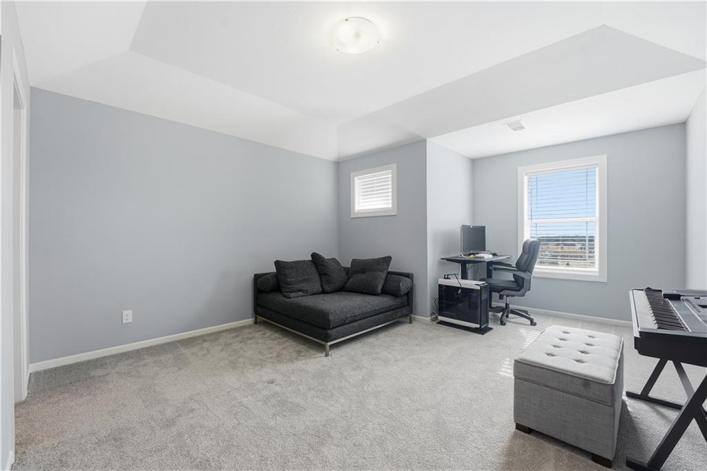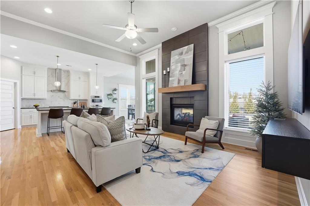 The popular James Engle Emory plan is quality built with 2x6 frame. This home offers a beautiful front elevation and a functional layout. Set on a cul-de-sac, this nearly new home sits high on a hill facing south, with a landscaped island and a fenced yard backing to green space. Double doors open to a light and bright interior featuring a main-floor primary suite plus an additional bedroom with a full bath-perfect for guests or a home office. The kitchen includes a spacious island, tall cabinetry, and a contemporary design ideal for everyday living and entertaining. Upstairs offers two bedrooms with private, ensuite baths and a loft. Relax outdoors on the screened porch overlooking green space. The garage is prepped for EV charging. This neighborhood truly has it all to create new friendships with extensive amenities including a club house, pickle ball courts, trails, pool and play area.