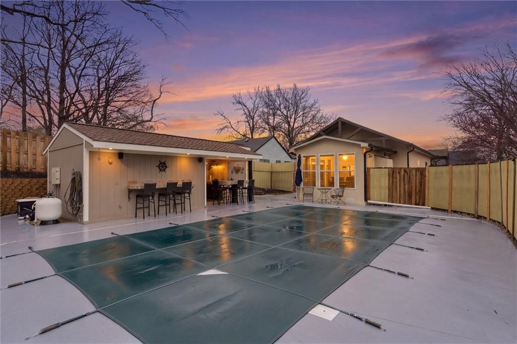The best of both worlds truly exists at Lake Tapawingo. This beautiful second tier home sits on a double lot offering lake views and a one-minute walk from your front door is your private dock. While at home you’ll enjoy an in-ground saltwater pool, complete with a covered 11x12 cabana featuring a bar and bathroom, plus a 15-foot outbuilding—all enclosed by a 6-foot privacy fence. It’s a true party-pad backyard that’s designed for fun and easy maintenance. This impeccably maintained 3-bedroom, 2 full and 2 half bath home offers open-concept living with vaulted ceilings and a deck that runs the full length of the house—perfect for entertaining or enjoying quiet lake views. The granite kitchen features stainless steel appliances, custom pull-out cabinetry, and flows seamlessly into the dining and living spaces. Pella windows with custom treatments flood the home with natural light. The primary suite is located on the main level and includes a sunroom overlooking the pool, plus laundry conveniently located thru the large walk-in closet. The lower level hosts two additional bedrooms and a full bath, making it ideal for guests, kids, or flexible living arrangements. Beyond the fence, the property backs to green space, adding an extra layer of privacy that’s rarely found. This home is also exceptionally energy efficient, with 2x6 exterior construction, BIBS blown-in wall insulation, mounds of additional insulation, custom windows, no-maintenance stucco with wrapped fascia, and floor joists built with 2x10s on 12” centers. Additional upgrades include dual 200-amp electrical service, outdoor LP gas hookup for grilling, an 8-foot double insulated steel garage door with parking for 5 cars in the driveway, 6” seamless gutters, and a BRAND NEW ROOF. At Lake Tapawingo you’ll enjoy year-round community events and endless lake activities—boating, fishing, kayaking, skiing, and swimming. Homes with pools, docks, privacy, and this level of construction rarely come available.
