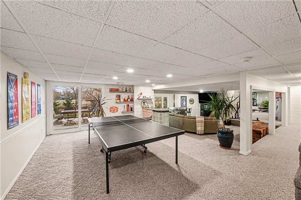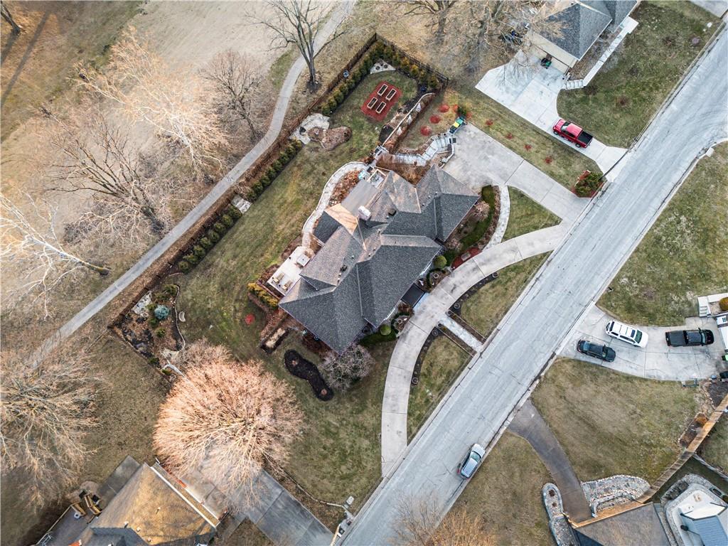 Stunning 1.5-story estate offering 4 bedrooms, 4.1 baths, a 2 car garage, and nearly 5,600 square feet, perfectly positioned on over half a acre lot along the golf course at Blue Springs Country Club. From the moment you arrive, the charming front entry welcomes you into a light-filled home designed to impress. Soaring ceilings with striking wood beams elevate the living room, where a beautiful fireplace anchors the space and walls of windows frame breathtaking golf course views. Just off the entry, a private main-level office provides the ideal work-from-home setting. The open-concept kitchen features granite countertops, abundant cabinetry, and flows seamlessly into a sunlit eat-in area/sunroom that opens onto the upper deck. Do not miss the laundry and mud room that is off the oversized garage. The main level also features a spacious primary suite with a beautifully updated spa-like bath, complete with double vanities, soaking tub, and walk-in closet. An additional bedroom and full bath are located on the main floor. Upstairs, you’ll find two oversized bedrooms and a full bath, offering comfort and privacy for family or guests.The walkout lower level is an entertainer’s dream and not to be overlooked. Enjoy a massive family room with bar area, dedicated exercise room, all-seasons room, full bath, fifth non-conforming bedroom, and even a 3rd garage with two workshop spaces — ideal for hobbyists or extra storage. The meticulously landscaped yard is truly exceptional, featuring an upper-level sitting deck, lower-level patio, and established vegetable gardens ready for the next growing season. This home has been impeccably maintained updated with fresh interior paint, refinished hardwood floors, new lighting, an updated primary bath, and more. A rare opportunity to own a golf course retreat that combines elegance, comfort, and functionality — this is a home you must experience to truly appreciate.