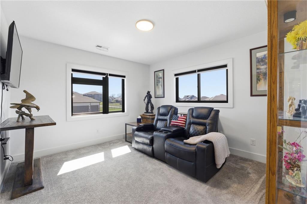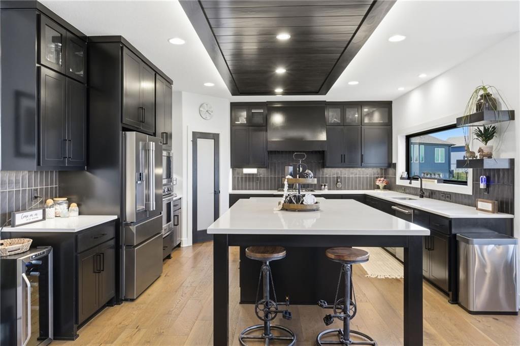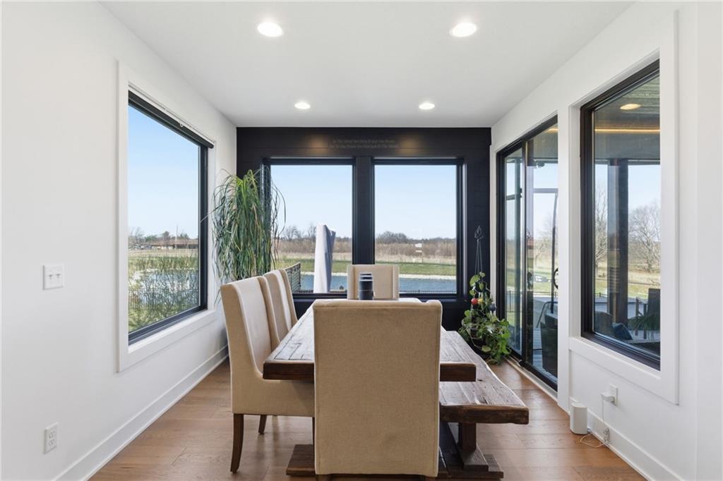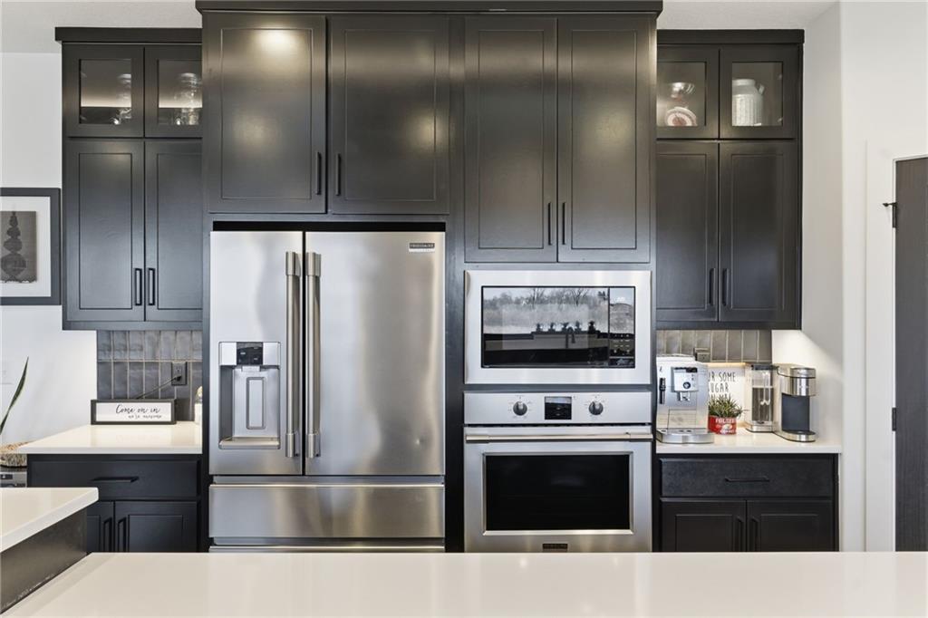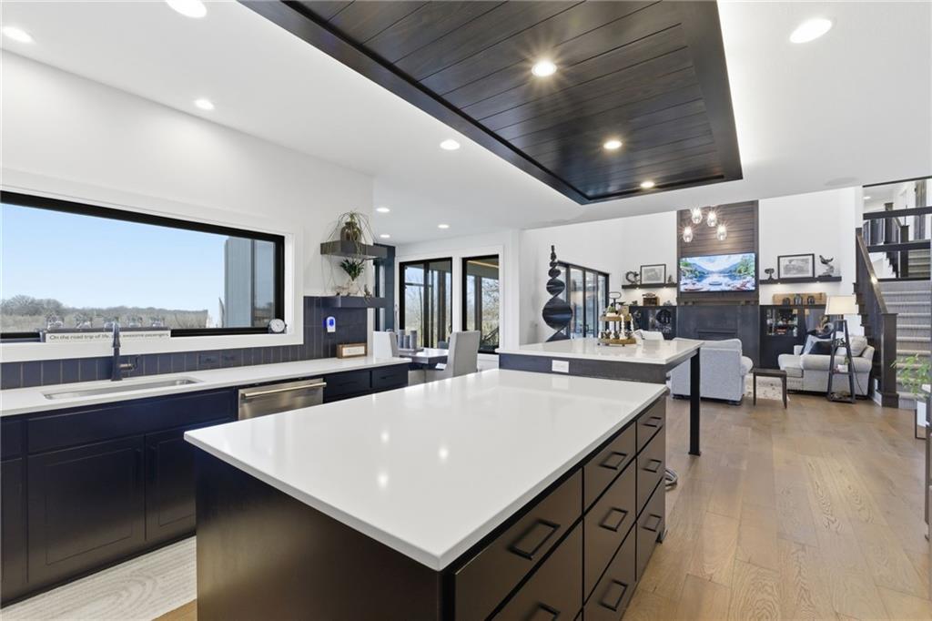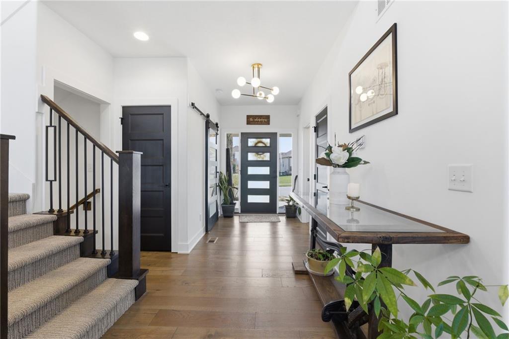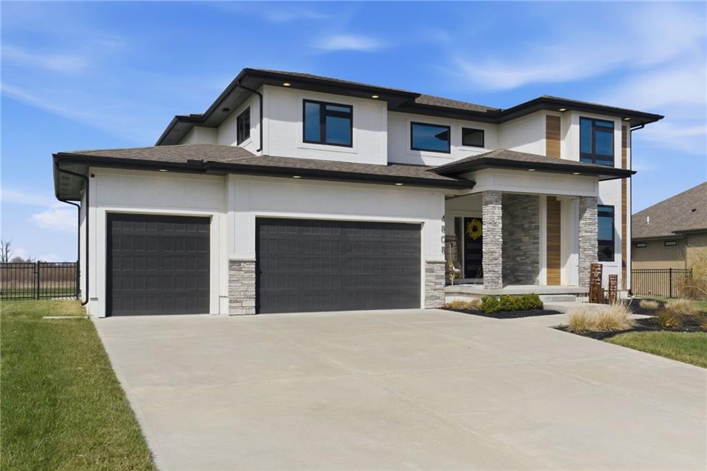 Are you dreaming of building a home in one of Lee’s Summit’s most desirable communities? There’s no need to start from scratch. This BEAUTIFUL and IMMACULATE 2 story home in Monticello is just 4 years old and filled with high-end upgrades, stylish designer finishes, and carefully selected details—offering all the benefits of new construction without the wait, hassle, or extra costs. You'll love the soaring high ceilings as you step into the Great Room with custom lighting, tons of natural light from oversized windows, and a unique floor to ceiling fireplace with built ins. Quality hardwood flooring runs throughout the main level. The fully equipped kitchen boasts bright white quartz countertops, rich, dark custom cabinetry, indirect lighting, and high end appliances, including a gas cooktop. The kitchen island is massive with plenty of room for entertaining. The kitchen also has a large walk in pantry, as well as a convenient second pantry closet. The upper level has 3 bedrooms, including the stylish primary bedroom with onsuite bath, offering all of the comforts you would expect. The lower level provides plenty of additional living space including a spacious family room with wet bar, game room, the fourth bedroom, and full bath. Additionally there is a generous unfinished storage area. Step out of the large, oversized sliding glass doors in the Great Room and enjoy the peaceful and secluded outdoor space of this home, featuring a huge 20 X 10 covered deck, along with a retractable awning to offer even more shade and comfort. Relax in the 6 person hot tub, which stays with the home. You’ll love the view of the scenic oversized pond just beyond the backyard, complete with walking trails as well as fishing. Monticello is a beautiful newer single family community in Lee's Summit with trails, a pool, and ponds near Fleming Park. Enjoy all the services and amenities this neighborhood has to offer.
