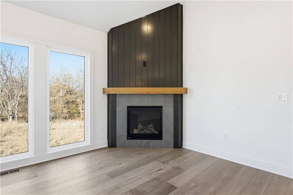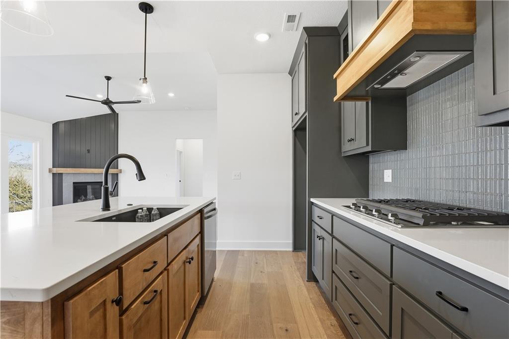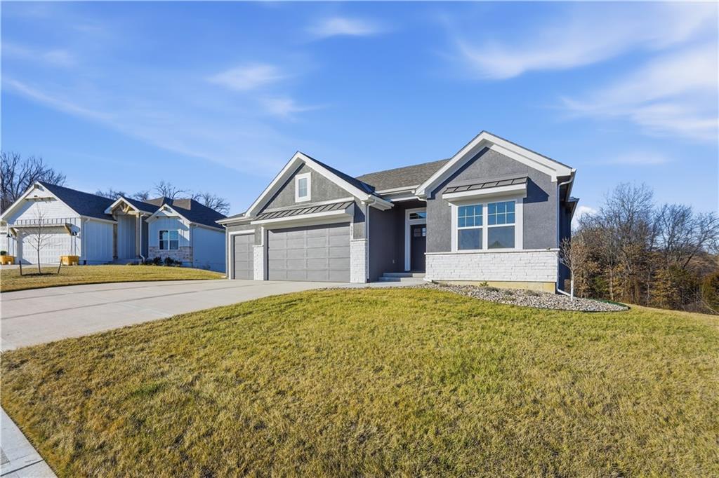 This reverse ranch is exactly the bright, spacious home you've been looking for! Four bedroom and three bathrooms offer plenty of space. The open concept kitchen and living area is warmed up with dark cabinets, a large island, a cozy fireplace accent wall, and huge windows looking out at the beautiful, green backyard. The finished, walkout basement and covered patio make it easy to enjoy that backyard - and the three car garage means you have plenty of space for your vehicles and toys. Come see it soon.