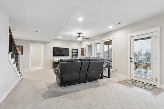 LIKE NEW!!!!! This 3.5 year old beauty is IMMACULATE. A perfect blend of style and functionality from the moment you step in you will appreciate the light filled open concept flow and thoughtful updates throughout. The spacious living area seamlessly connects to a well appointed kitchen featuring ample custom cabinetry, double ovens, a huge walk in pantry and a layout ideal for everyday living and entertaining. Within walking distance of the Community pool and playground. BONUS ROOM- a full, state of the art home theater with six oversized power-reclining loungers in tiered seating- perfect for movies, streaming, and gaming!!! Grade and middle schools within walking distance and several pre-school and daycare options near the Community. Yard is fully fenced and the home sports a full, outdoor upper deck accessible from the kitchen/dining area, and a large poured patio off the lower level walk out family room. This extremely lovingly cared for home delivers the ideal combination of location, layout and livability.... Welcome Home!