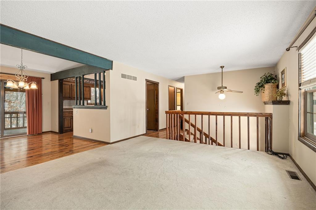 Location, Location, Location! Don't miss this 3 bedroom, 2.5 bath home offering both comfort and natural beauty. With a finished basement and two cozy fireplaces, there's plenty of space to relax year round. The large 2 car garage provides ample storage and workspace. Outside, enjoy a covered, screened in back deck for shaded afternoons and an open deck section perfect for starry nights. The kitchen has custom cabinets with pull out shelving, stainless steel appliances and a gas stove. Laundry is set up for the main floor and in the basement half bath. From the basement you can walk-out to a covered patio work or sitting space with a shed. Make an appointment now, before it's too late.