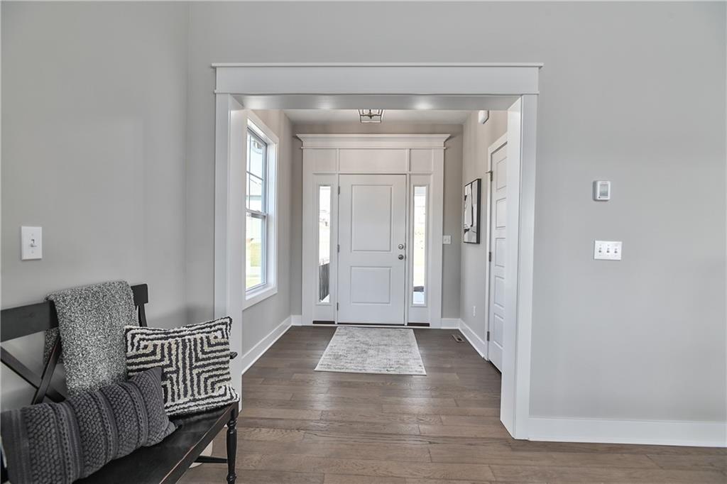 This home is perfectly situated at the end of a quiet cul-de-sac, adjacent to a public golf course. The stunning Reverse 1.5-Story Aspen by Prieb Homes offers a spacious, open floor plan filled with impressive details throughout. Soaring vaulted ceilings with stained beams and striking stonework surrounding the fireplace create a grand first impression upon entry. The kitchen is designed for both entertaining and everyday living, featuring a massive granite center island and ample workspace. The primary suite serves as a relaxing retreat, complete with an adjacent bonus office space and a conveniently located laundry room with built-in cabinetry. The spa-like primary bath includes a custom shower and separate vanities. The finished lower level expands the living space with a wet bar, two additional bedrooms, and a full bathroom—perfect for guests or recreation. Step outside to the large covered 14x12 deck and enjoy peaceful views. Room sizes and taxes are estimated, and some features may not be available in this spec home. Buyer’s agent to verify all information. Some Pictures are of completed plan, decor selections and front elevation orientation to vary.