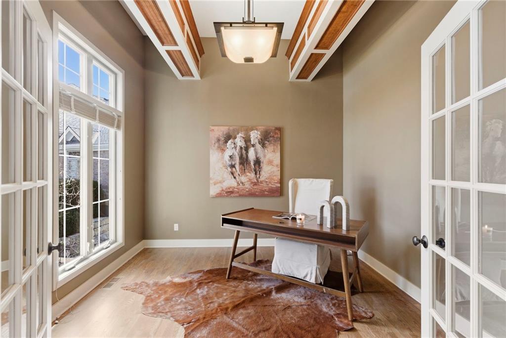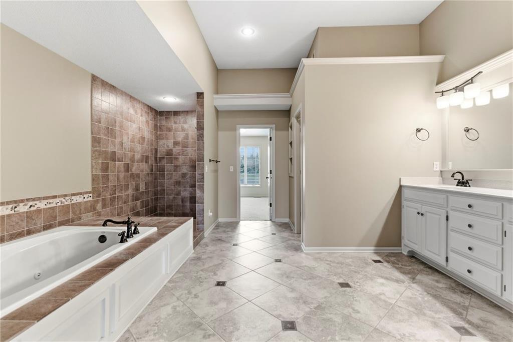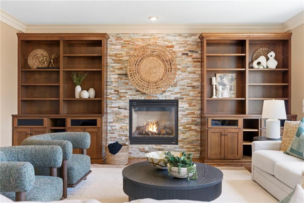 Welcome to this stunning former model home in the sought-after Thousand Oaks subdivision. Crafted by Shawn Land Builders & meticulously maintained by the original owners for nearly 20 years, this refined 4-bedroom, 4.5-bath residence offers just under 4300 sq. ft. of brilliantly designed space. Its oversized lot at the end of a cul-de-sac backs to protected green space, with mature trees surrounding the backyard to provide privacy and a serene setting. From the grand two-story foyer to the expansive lower level primed for entertaining, every detail reflects exceptional living. Highlights include a stylish office, a formal dining room, and a gorgeous living room complemented by a gas fireplace with a stone facade, built-ins, and picturesque windows framing serene views. The kitchen is beautifully appointed with a substantial island, granite countertops, custom cabinetry, GE appliances, a walk-in pantry, & a bright breakfast room. Just beyond, a covered deck becomes an inviting spot for coffee or to unwind with dinner and drinks. Upstairs, the primary suite impresses with double-tray ceilings, a spa-like bath with a jetted tub & shower, & a giant walk-in closet. One secondary bedroom has a private ensuite, while the other two share a Jack-and-Jill bath. Downstairs is an entertainer’s dream, featuring a full wet bar with beverage cooler and fridge hookup, microwave, dishwasher, a huge recreational area, 2 bonus rooms, full bath & storage. Outside, a sensational stone patio, bench, and wood-burning fire pit await quiet evenings under the stars. A 3-car garage has an organization system and a utility sink. Plus, a brand-new roof & 1-year Home Warranty adds peace of mind. Neighborhood amenities encompass scenic lakes, trails, pools, clubhouse, playgrounds, tennis courts, a swim team & social events. With luxury, comfort, and a prime location near Parkville’s shops, dining, entertainment, and top-rated Park Hill schools, this designer home has it all!