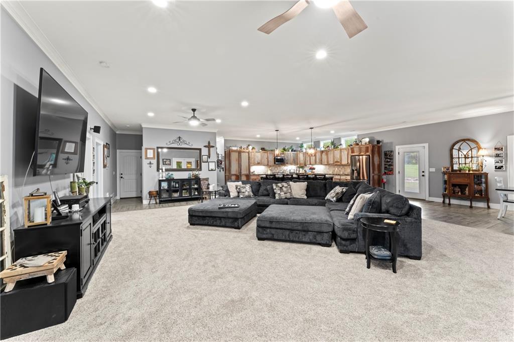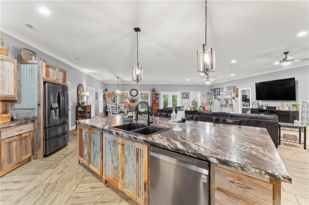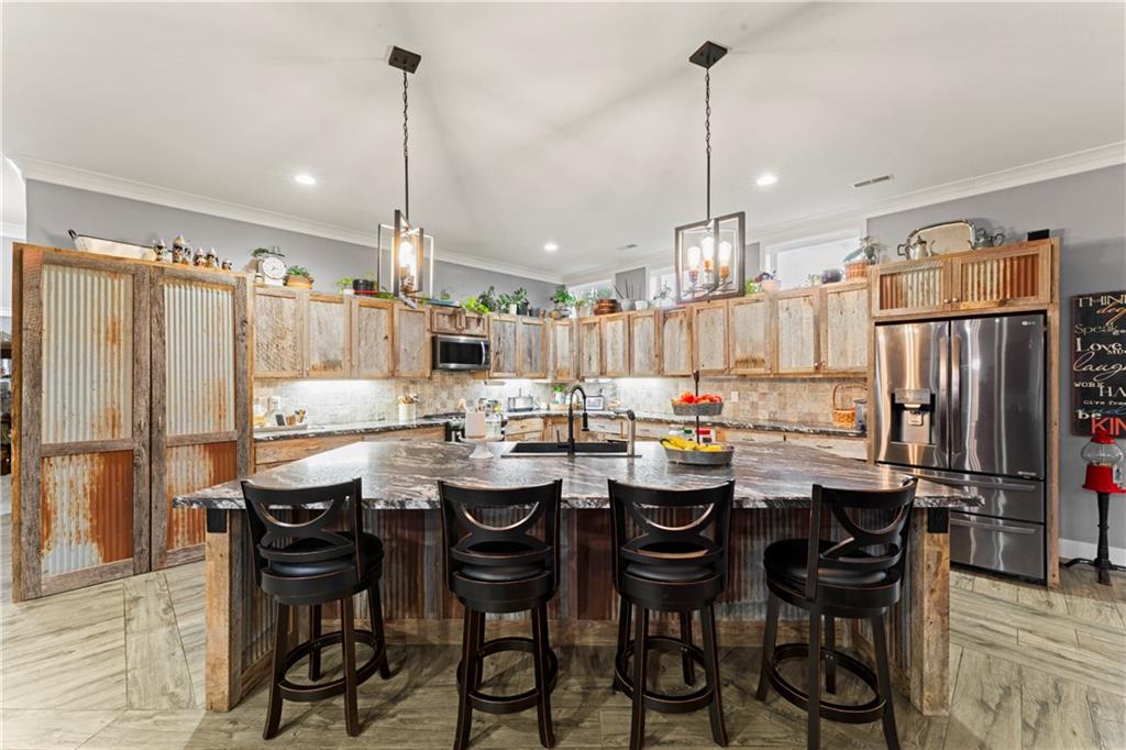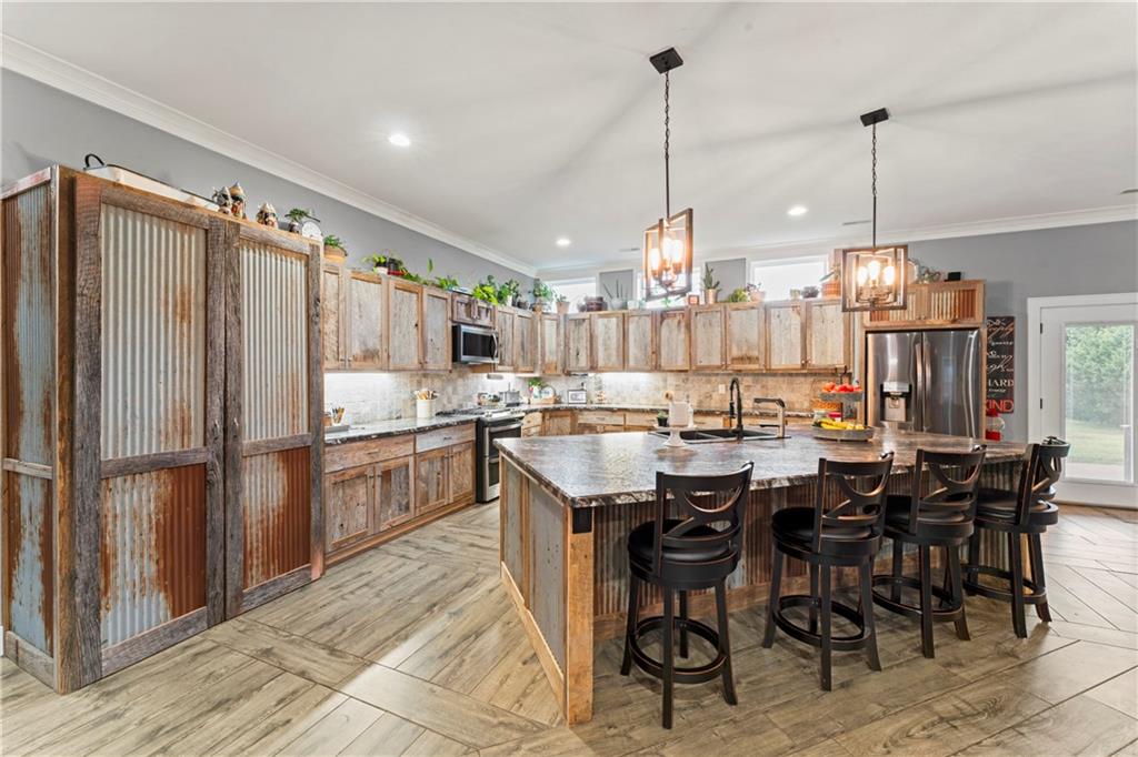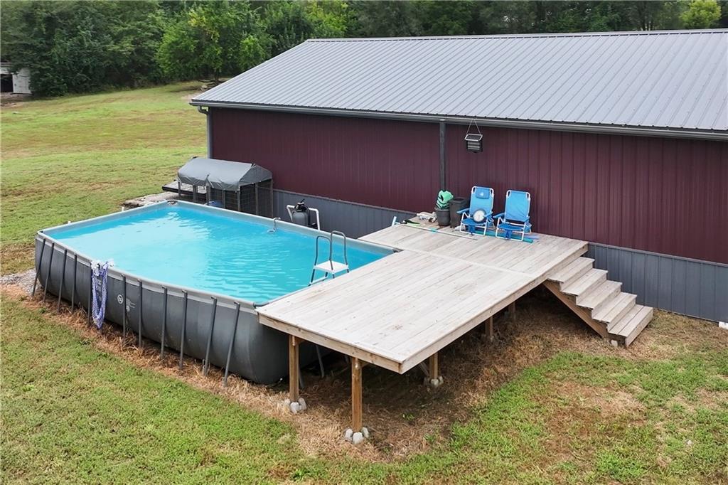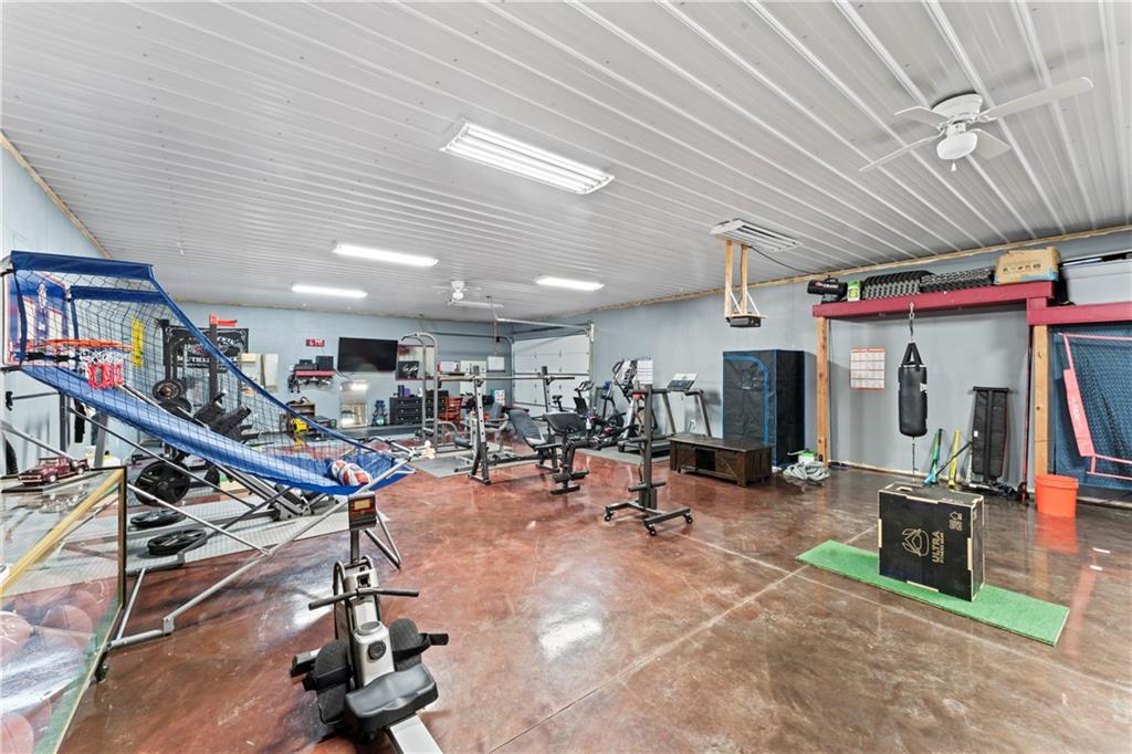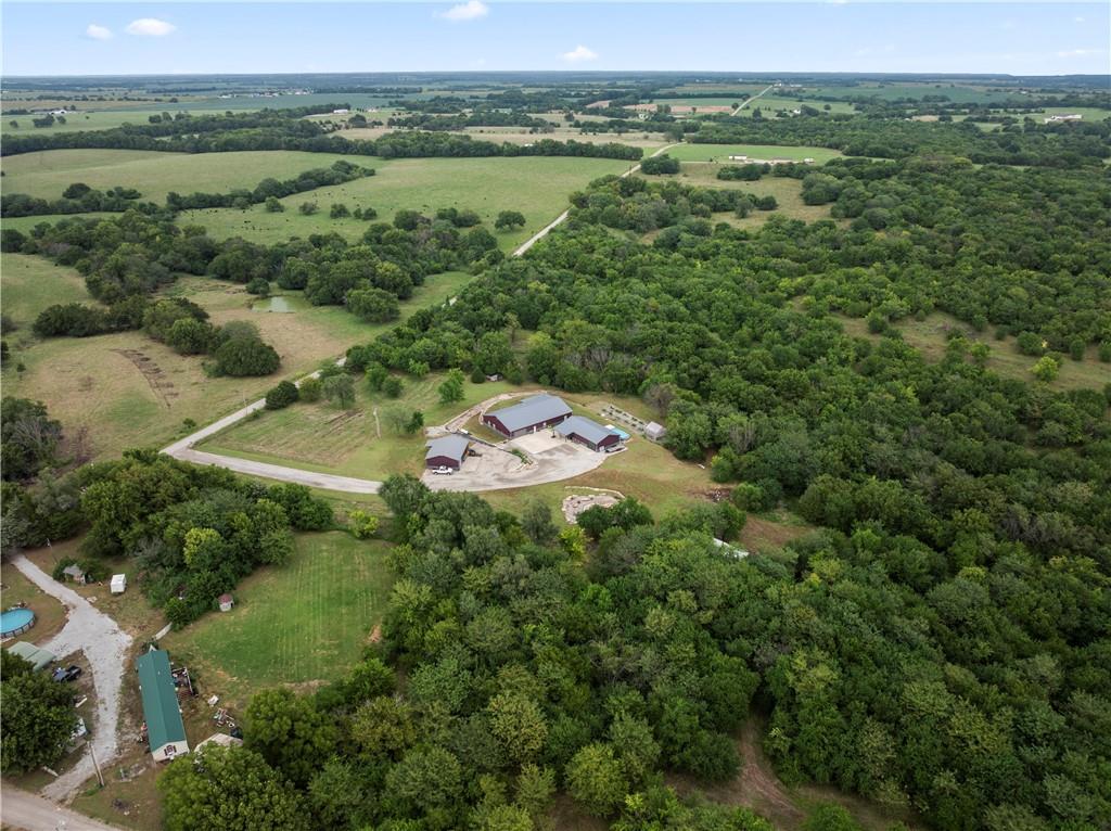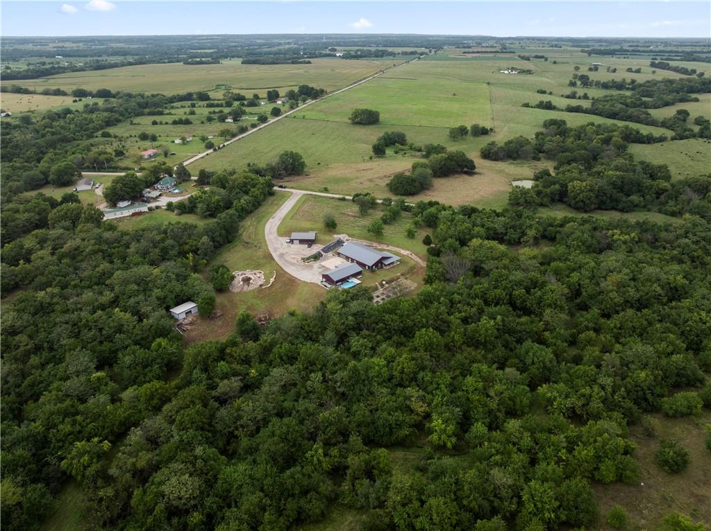 Tucked away on 45.5 wooded acres, just 40 minutes from Overland Park and less than 5 minutes from Drexel, this one-of-a-kind retreat delivers million-dollar views and unmatched privacy. The custom-built, maintenance-free home offers over 3,000 sq. ft. of thoughtfully designed living space, blending high-end comfort with the beauty of nature. A wraparound porch overlooks a wet-weather creek, mature timber, and an ever-changing backdrop of wildlife. Inside, the massive great room is perfect for gatherings, anchored by a striking gourmet kitchen built for entertaining. Quality craftsmanship is evident throughout, with 2x6 construction, spray foam insulation, 10 ft.. ceilings throughout, oversized doors, custom windows, and rich woodwork. The primary suite offers an oversized walk-in shower, dual sinks, and walk-in closet, while every room, including the oversized garage, feels spacious and inviting. Outdoors, enjoy your own private paradise with a custom fire pit and over two miles of trails for exploring. A 30x40 insulated metal shop with a concrete floor provides space for equipment or hobbies. For even more, the property includes a 30x55 private gym or recreation building with a kitchenette, full bath, and a large theater area, ideal for movie nights, workouts, or hosting friends. With wide-open skies, modern amenities, and complete seclusion, this is a rare opportunity to live the ultimate outdoor lifestyle, without compromise. Follow the winding driveway and discover your new sanctuary. Home is priced below appraised value.