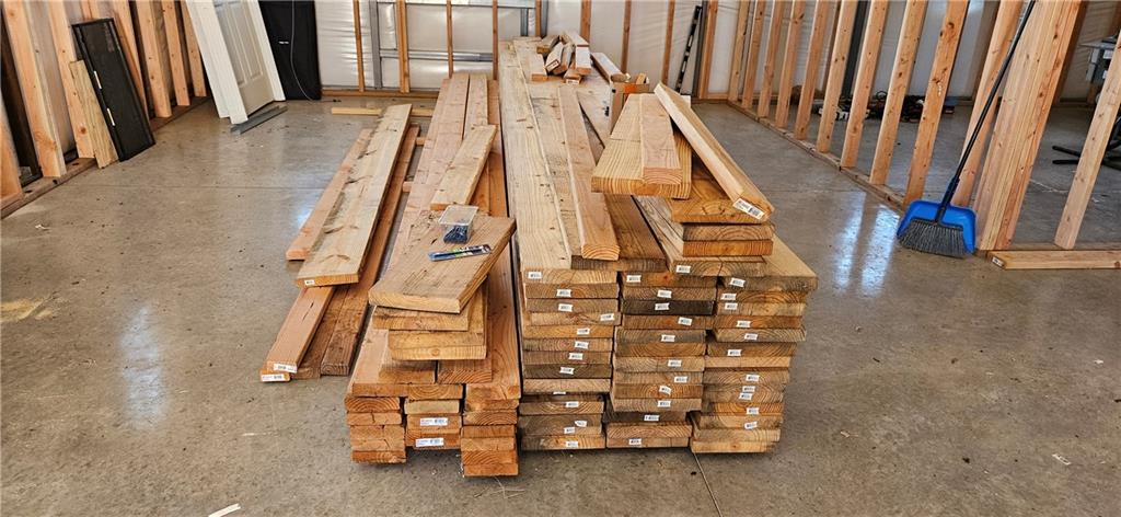 Cozy barndominium ready for your finishing touches! This metal barndominium is framed for a 1-bedroom, 1-bath open floor plan with a combined kitchen and living area. Features include a covered front porch, covered carport, storage shed, and a backyard fire pit—perfect for enjoying the outdoors. Electric service has been connected, and a water meter is scheduled to be installed. Located in the Linn Valley Lakes subdivision, owners enjoy access to amenities such as a community center, fishing, camping, boating, golf, abundant wildlife, and more.