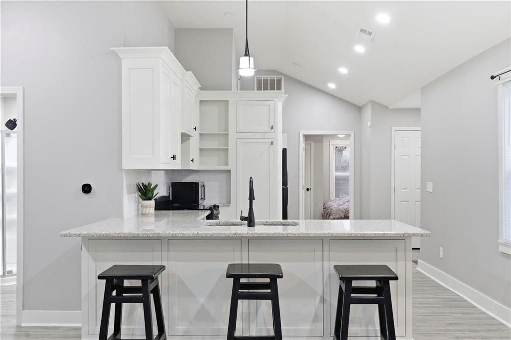 This adorable bungalow lives far larger than its footprint thanks to an open, well-designed floor plan. Step inside to soaring ceilings and a spacious living area that flows seamlessly into the dining and kitchen spaces. Durable LVP flooring runs throughout the main living areas and bathrooms, with cozy carpet in the bedrooms. The custom kitchen features beautiful countertops, abundant cabinetry, and newer appliances. Completely updated from top to bottom, this move-in-ready gem is a must-see—perfect for an owner-occupant or as a turnkey investment opportunity. Don't miss this one, tour it today!