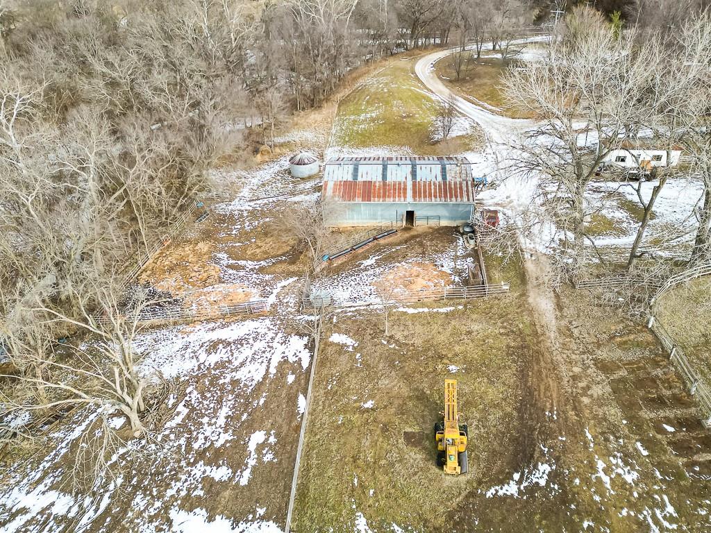 BEAUTIFUL 75-ACRE RANCH WITH HOME, BARNS, PONDS, AND HORSE FACILITIES ON PAVED ROADS! This stunning property offers everything you could want in country living—rolling land, peaceful views, and exceptional amenities. The ranch-style home features 3 bedrooms with an open floor plan and gorgeous vaulted wood-beamed ceilings that create a warm, inviting space. The kitchen and living room center around a striking brick fireplace, perfect for cozy nights. The spacious primary suite includes a walk-in closet and private bath, while two additional bedrooms and a full bath are located on the other side of the home. The finished basement adds versatility with a rec room or guest studio equipped with a small kitchen and full bath. Outside, the land is fenced and ready for cattle or horses, complete with an outdoor riding arena, a 60x40 horse-ready barn, 2 ponds, and wooded acreage with a stream running through. Conveniently located on paved roads with easy access to Kansas City, Leavenworth, or Legends shopping!
