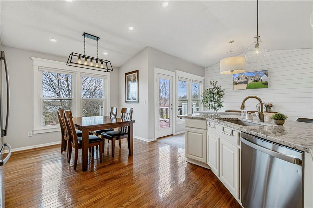 This stunning 3-bedroom, 2.5-bath split-level home is truly move-in ready and shows like new. Thoughtfully updated, it blends modern finishes with functional living spaces—inside and out. The heart of the home is the fully updated kitchen, featuring granite countertops and sink, double ovens, pendant lighting, and updated dinette lighting—perfect for everyday living and entertaining. Throughout the home, you’ll find craftsman-style window trim, added windows that flood the space with natural light, and tasteful details such as shiplap accents in the hearth room/dining area. The fireplace is a showstopper, wrapped in stone all the way to the ceiling. Brand-new carpet (2026) adds a fresh, comfortable feel throughout the main living spaces. The finished basement offers exceptional versatility, featuring a wet bar complete with a beer tap tower and refrigerator, a convenient half bath, surround sound wiring, and a dedicated office or bonus space. Outdoor living is just as impressive. Enjoy two distinct outdoor spaces, including a covered patio with lighting and a newly stained deck and fence. The landscaped yard includes a full sprinkler system and an in-ground basketball goal, making it perfect for both relaxation and play. Major updates provide peace of mind, including new energy-efficient windows with transferable warranty (2023), enlarged 70-gallon hot water heater (2023), lifted driveway with transferable warranty (2023), a roof replacement with updated venting (2015), and updated bathrooms—including a refreshed kids’ bath with added window and new tile in the primary bath. Fresh exterior paint (2018) and numerous smart WiFi switches throughout the home add both curb appeal and modern convenience. This home is a rare find—beautifully maintained and ready for its next owner to enjoy.