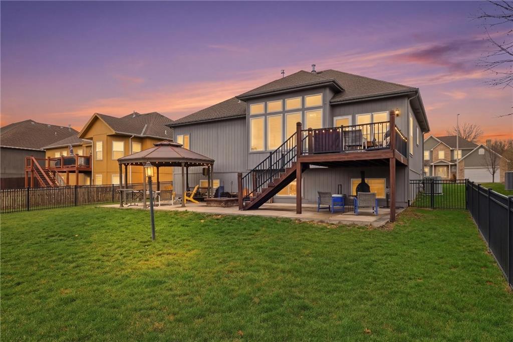 Beautifully maintained ranch-style home offering true main-level living in the heart of Kansas City. This inviting 3-bedroom, 3-bath home features an open and functional layout designed for both everyday comfort and entertaining. The main level showcases plantation shutters, a cozy gas fireplace with custom mantle, and abundant natural light throughout the living spaces. The spacious primary suite offers a relaxing retreat with double vanity, soaking tub, separate shower, and a large walk-in closet. A second bedroom, full bath, and main-level laundry provide convenient one-level living. The kitchen and bathrooms feature granite countertops, and all appliances stay—making this home truly move-in ready. Premium Karastan carpeting enhances comfort in the bedrooms and the finished daylight lower level. The finished basement expands your living space with a large rec room perfect for entertaining, movie nights, or game days, along with a third bedroom, full bath, walk-in closet, and generous storage area. Step outside to your private backyard retreat featuring a spacious gazebo with electricity, gas fire pit, aluminum fenced yard, and in-ground sprinkler system—ideal for relaxing evenings or hosting gatherings. Additional features include a Vivint security system and a 2-car garage. Move-in ready, thoughtfully maintained, and offering desirable main-level living with extra entertaining space—this home is a must see.