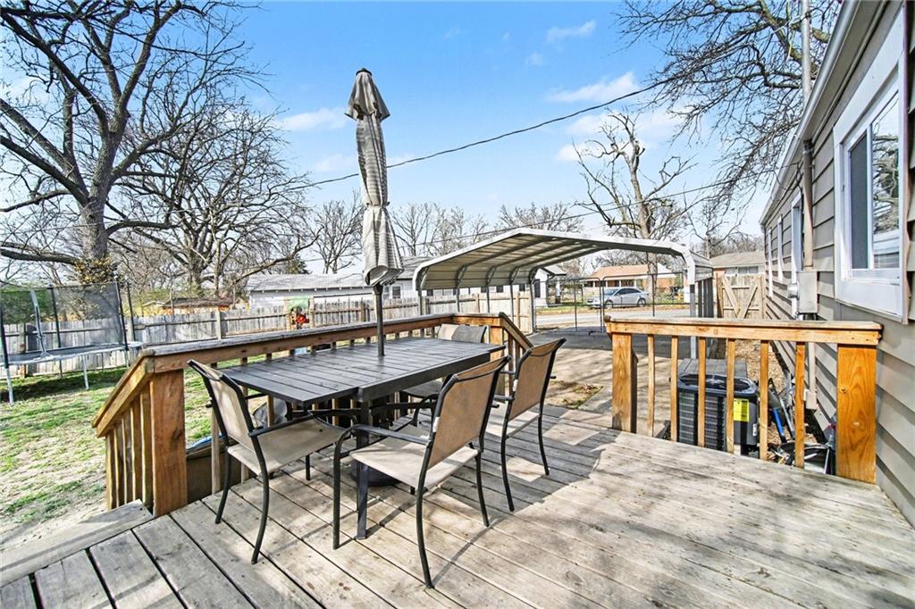 Beautifully maintained 3 bedroom, 2 bath ranch that is truly move in ready! Major updates have already been taken care of, including a 3 year old Roof and AC. This home offers wonderful curb appeal with a charming front porch. Step inside to find modern interior paint colors and an abundance of windows that fill the home with natural light. The bright, galley style kitchen features white cabinetry, stainless steel appliances, stylish backsplash, and luxury vinyl plank flooring, creating a clean and contemporary feel. Additional highlights include a bonus office space, nicely sized bedrooms, and a functional layout perfect for everyday living. Enjoy relaxing or entertaining on the spacious deck overlooking the generously sized fenced backyard. A covered carport adds extra convenience. Ideally located just 15 minutes from downtown Kansas City, this home combines comfort, style, and a fantastic location.