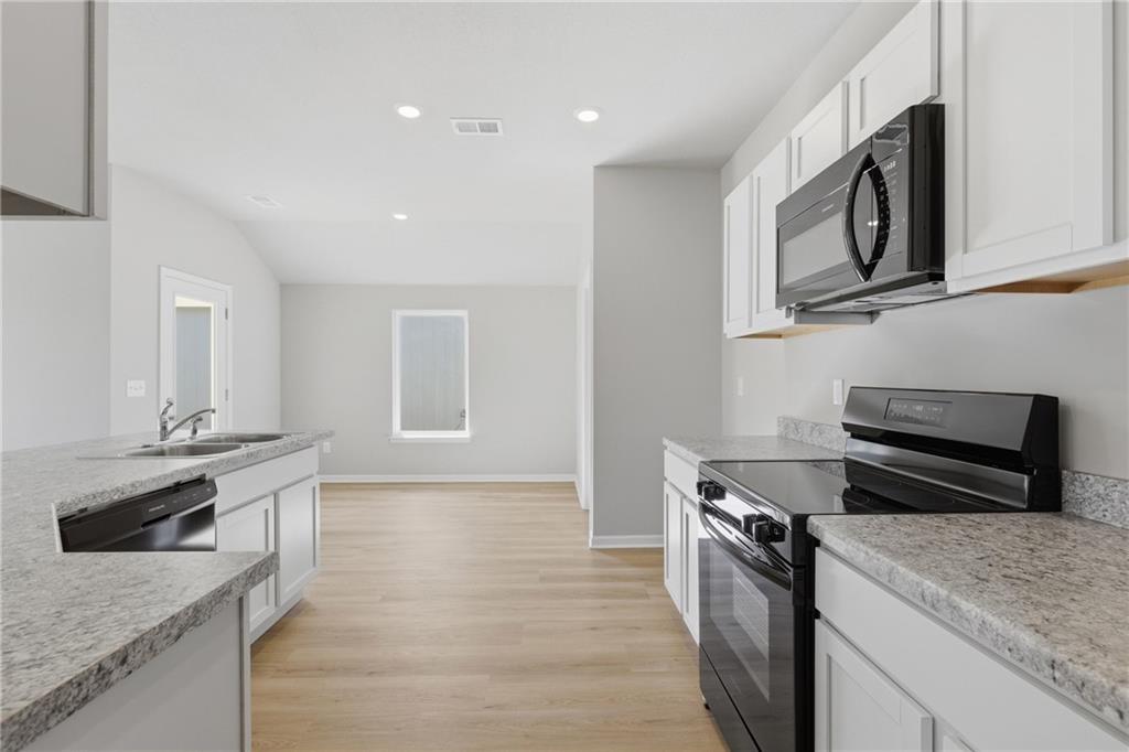 This new single-story home blends style with functionality. Two secondary bedrooms share a bathroom in the hall at the front of the home, while the owner’s suite is tucked into the back corner with a private bathroom. Down the hall is the free-flowing main living area, which includes a kitchen with a center island, a welcoming family room and a dining room with a covered rear patio. A convenient two-car garage completes the home. Photos and tour may be of a previously sold home and are for illustrative purposes only. Colors and finishes may vary. See New Home Consultant for Details