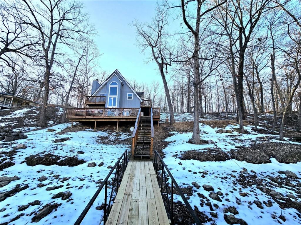 Imagine living the LAKE LIFE in this charming A-Frame home boasting 100 feet of stunning lakefront. The property includes two bedrooms on the main level, and a spacious loft that serves as a third bedroom. A lower level featuring the kitchen, dining area, fireplace, laundry, and living space. You'll find the expansive deck, ideal for relaxing or entertaining, just off the kitchen/dining area on the lower level. The dock is cove-protected and stays afloat year-round. This home underwent a complete remodel in 2017, and recent upgrades include a new blacktop driveway in 2025, along with a new septic system and roof in 2024. This home can be a short term rental opportunity and there is some rental history. Don't waste anytime, call today and schedule your private tour.