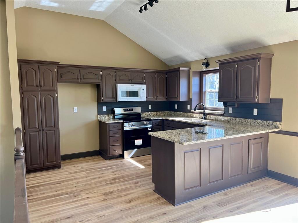 Striking color scheme inside with lots of new things. Granite counter tops, new sinks and stools, new laminate flooring, new light fixtures and appliances. This front-to-back split has tall ceilings in the living room and kitchen. Lower level has bright, airy rec. room with it's own half bath. It's a walkout too. Lots of new custom blinds provide great privacy and light control. Furnace was just replaced. Home has maintenance free siding, 9 month old roof and double-level deck. Adding your landscaping will reap big rewards. All of the homes in the neighborhood are in great shape and all very different, so if you are tired of cookie cutter subdivisions, come take a look and you will feel right at home.