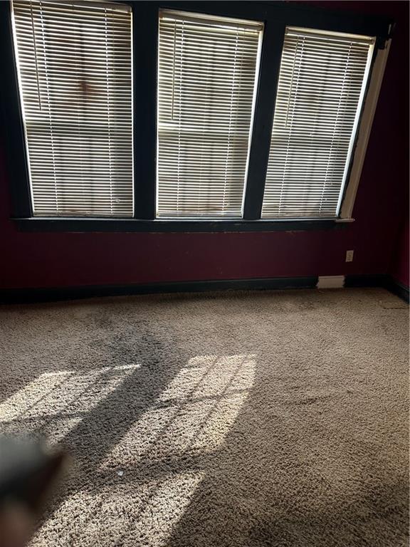 Empty room featuring carpet floors and baseboards