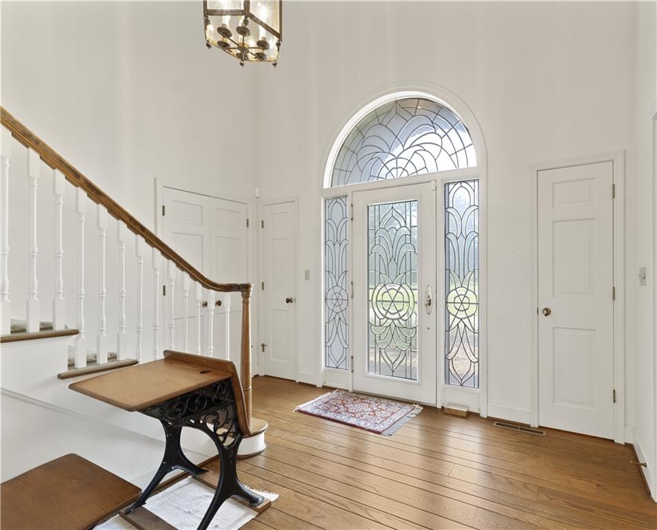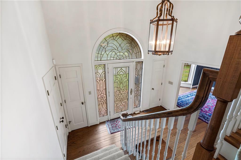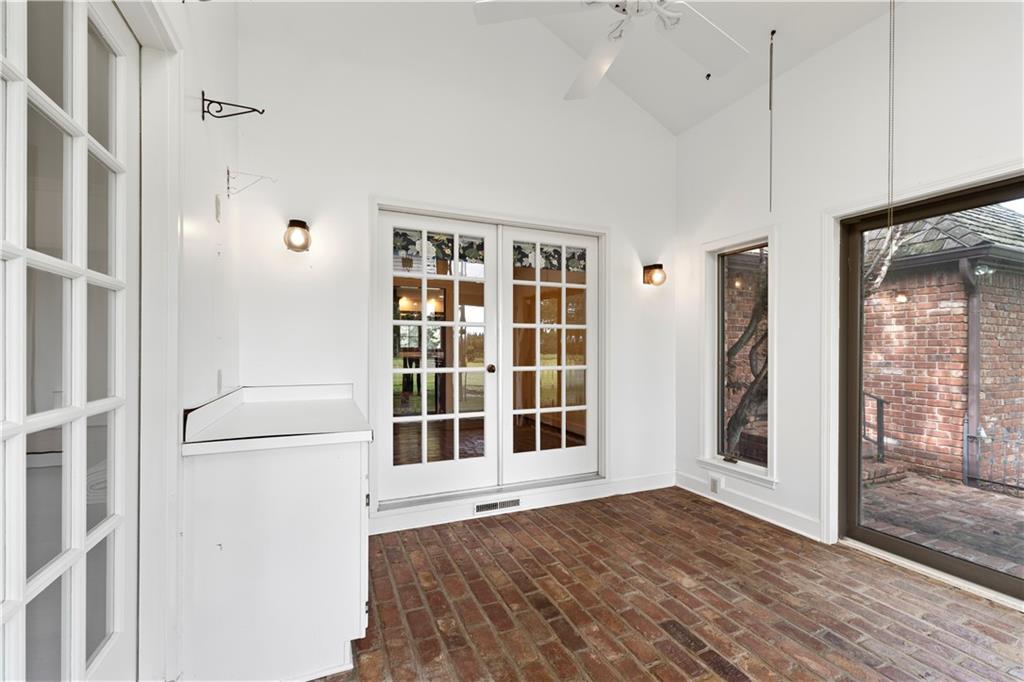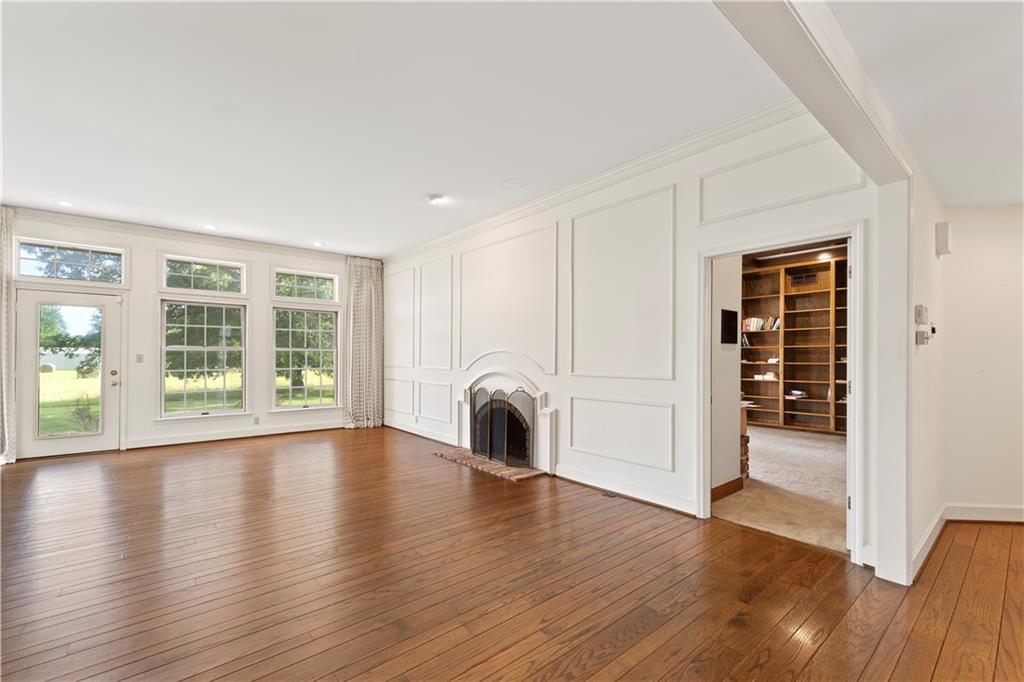 Take advantage of the rare opportunity to own a stately, full brick home perfectly positioned on 2.3 sprawling acres (m/l) just outside the city limits of Nevada, MO. The grand arched glass entryway opens into a light-filled foyer, offering a stunning view of the winding staircase that sets the tone for the home's architectural character. The main level has been elevated with brand-new wide-plank wood flooring, custom-milled in South Carolina, flowing from the entry and encompassing the formal dining room, kitchen, breakfast nook, walk-in pantry, and hallway. Host gatherings in the formal dining room under a tray ceiling and elegant chandelier, with a bay window framing the lush front lawn. The living room is a breathtaking sanctuary of comfort and style. Soaring high ceilings are accented by crown molding and wainscoting, creating an atmosphere of timeless sophistication. At the heart of the room sits a cozy fireplace, while a wall of windows bathes the space in natural light and offers serene views of the sunroom and the classic brick patio beyond. The library is a true retreat featuring a coffered ceiling, custom built-in shelving, a second fireplace, and a wet bar with glass shelving—the ultimate setting for a home office or quiet evening. Enjoy slow mornings under the beamed ceilings in the breakfast area, or step into the sunroom with classic brick flooring, accessible from both the living and breakfast areas. The primary suite, located on the main-level offers walk-in closets and a spacious en-suite bath with with double vanities, a garden tub, and separate shower. Designed for convenience, the main-level also includes two half-baths, a laundry room, and a walk-in pantry providing ample storage and effortless functionality. The upper level provides two additional bedrooms and bathrooms. While the full, unfinished basement includes a third fireplace, providing a versatile space where the possibilities are endless.