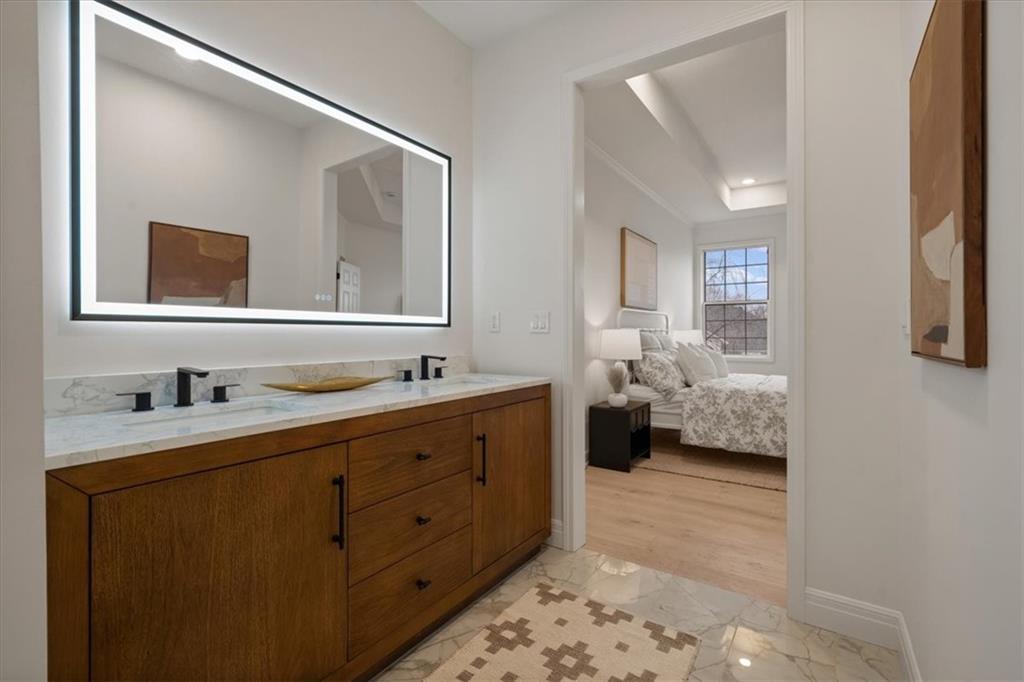 Welcome to Heatherwood—one of the most sought-after maintenance-provided villa communities in South Overland Park! This stand-alone villa offers true low-maintenance living with reasonable HOA dues that cover trash, recycling, snow removal, and even exterior house painting. Better than new, this home has been fully remodeled from top to bottom with all major mechanicals already addressed. Recent upgrades include a new limited-lifetime architectural shingle roof, new furnace, and new A/C with coil. The stunning kitchen features high-end cabinetry with soft-close drawers and doors, a deep pantry, granite countertops and splash, a premium range with air-fry and Wi-Fi capabilities, complete with a new Bosch dishwasher. Sellers offering $5,000 CREDIT for landscaping with acceptable offer! All bathrooms have been beautifully updated with contemporary tile and modern finishes. The spacious primary suite boasts dual vanities, a lighted mirror, a separate toilet room, a large walk-in closet, and an oversized walk-in shower that may just be the largest in the neighborhood. New engineered hardwood flooring flows throughout the main level, creating a cohesive and upscale feel. The finished basement adds two additional bedrooms and generous recreation space—perfect for guests, hobbies, or entertaining. Step outside to enjoy the brand-new oversized deck overlooking the backyard. The majority of windows have already been replaced, with the remaining scheduled for installation soon. This is a rare opportunity to own a truly turnkey villa in an exceptional South Overland Park location—modern updates, major expenses already handled, and maintenance-free living all in one.