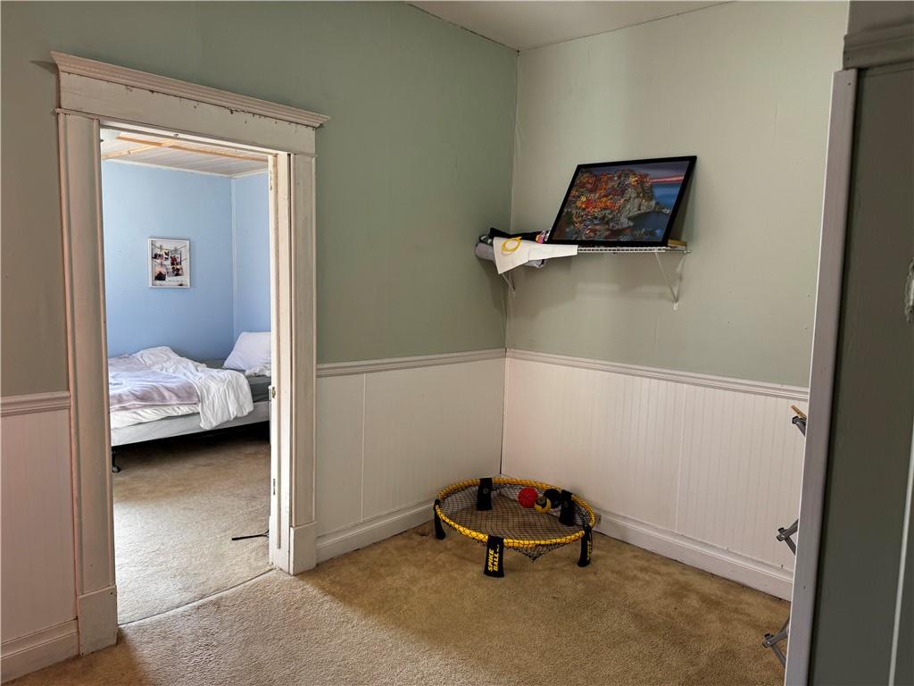 Well-kept bungalow on a corner lot. New front porch. Newer kitchen cabinets and countertops and updated flooring and vanity and shower surround. Nice level lot with a 1 car detached garage. This would be a great starter home or place for your student.