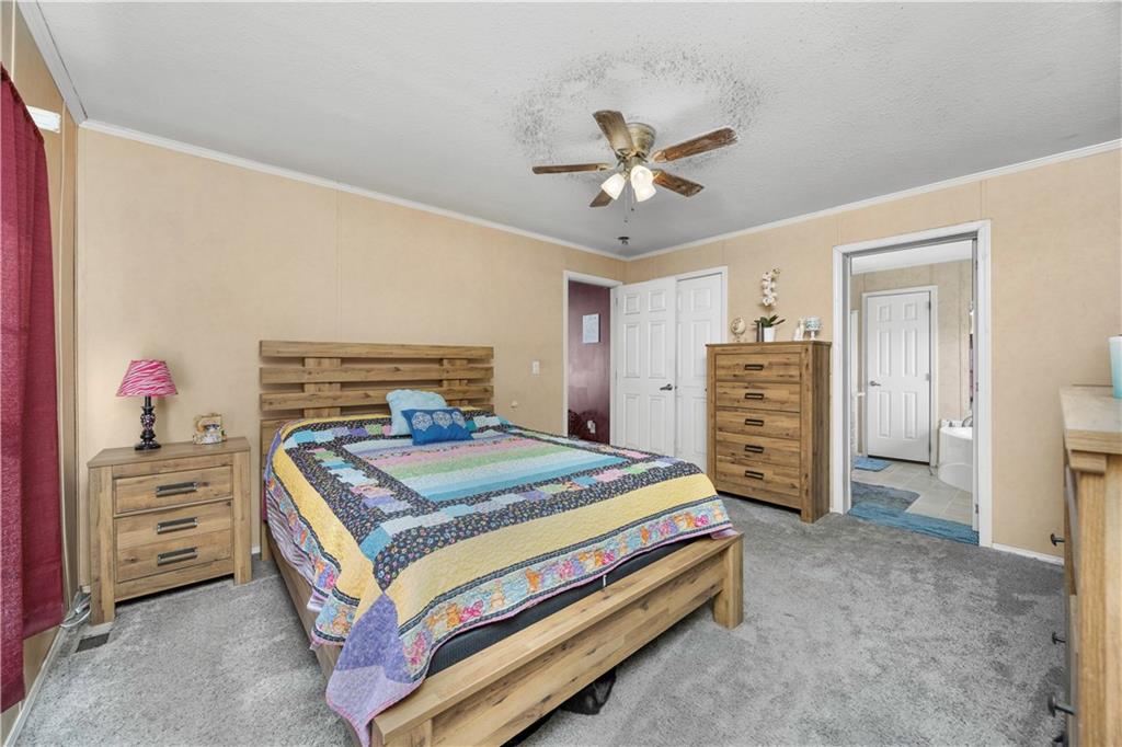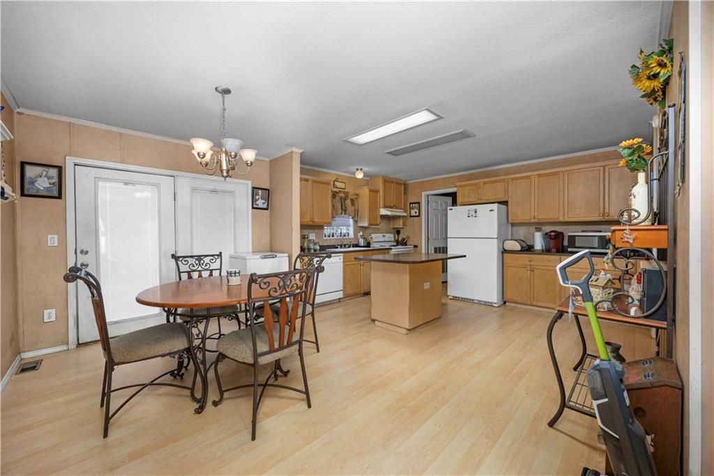 Sometimes all you really want is space, a good view, and a little peace and quiet. This 3-bedroom, 2-bath manufactured home sits on 27± fenced acres just west of Coffeyville with easy access to Hwy 166. The home offers a functional layout for easy living. In the living room you will find a wood-burning fireplace for cold winter nights. The eat-in kitchen has a small island with storage underneath. The primary bedroom has an en suite bathroom featuring a stall shower and jacuzzi tub- perfect for soaking the stress away. The land is fully fenced with a cattle guard by the house and chain-link fencing in the backyard, making it ideal for livestock or pets. A two-car carport and storage shed provide added convenience. The pond is the standout feature—perfect for fishing, relaxing, and enjoying quiet country evenings. The home does need some updates, including hail-damaged siding on the west side and carpet replacement, offering buyers an opportunity to update and add value. A deck in the backyard is ready for repair and personalization. This property offers open pasture, scenic views, and peaceful country living with close proximity to town. Call to schedule a tour today!