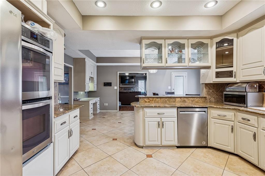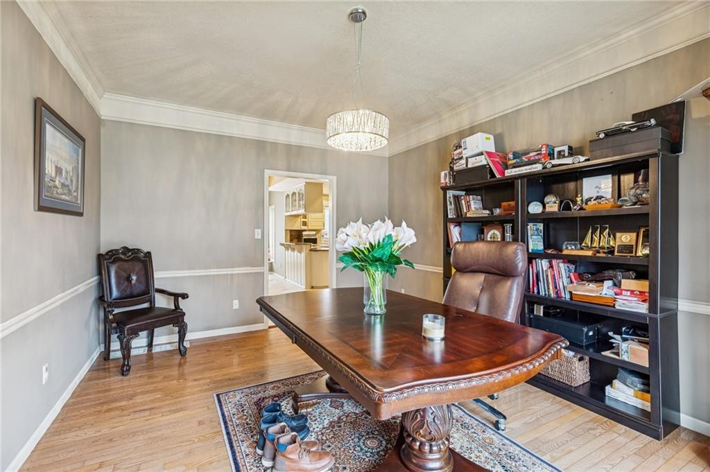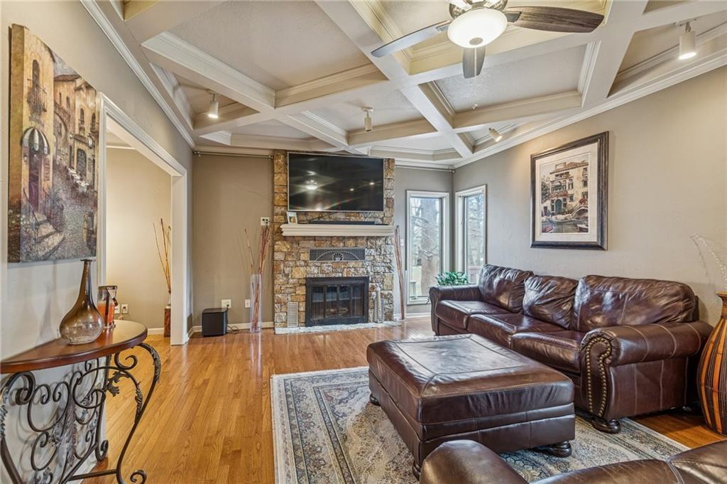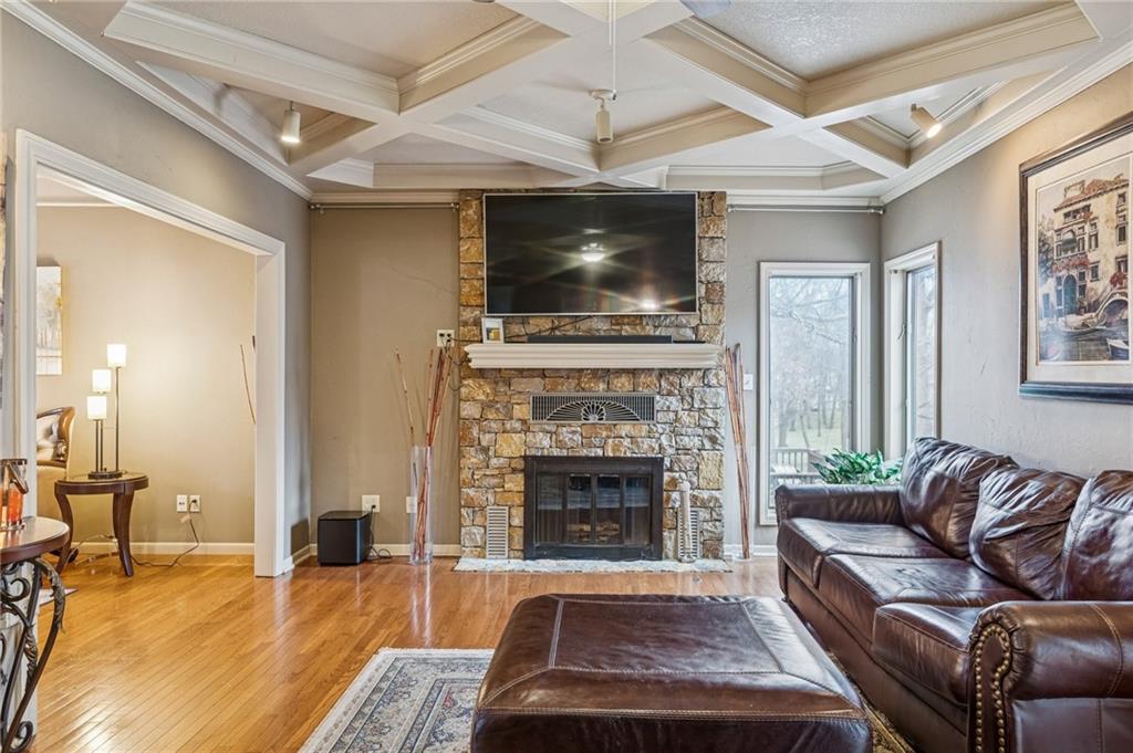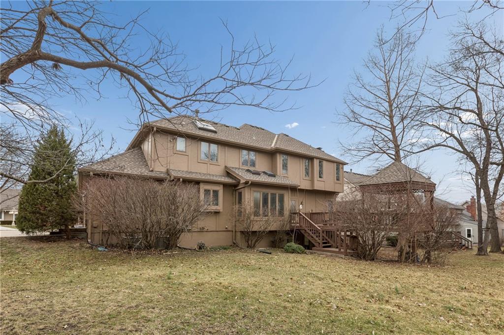 Step into exceptional scale and style with this impressive 4-bedroom two-story home that delivers space, character, and versatility at every turn. A striking grand entry sets the tone, welcoming you into formal living and dining spaces featuring hardwood floors, crown molding, large windows and an elegant, flowing layout. The main living room is a true showstopper with coffered ceiling detail, a beautiful stone fireplace, and wood floors opening to the kitchen with granite countertops, ample cabinetry, double ovens, a custom pantry and an eat-in area with a tray ceiling. An adjacent room provides flexibility for a formal dining area or home office. The oversized primary suite feels like a private retreat, complete with a sitting area and spacious en-suite bath offering double vanities, a soaking tub, and separate shower. Three additional bedrooms are located upstairs, while a finished room on the lower level offers the perfect space for a home office, exercise room or storage. The expansive walk-out lower level is an entertainer’s dream, featuring a second fireplace, large recreation area, and wet bar with plenty of room for a media space, game area, and lounge. Step outside to enjoy multiple outdoor living spaces, including a patio, elevated deck accessible from the main living area and kitchen, and covered gazebo overlooking the backyard perfect for outdoor living and summer evenings. Experience a home that combines generous square footage, timeless details, and flexible living spaces, ready to be enjoyed for years to come.
