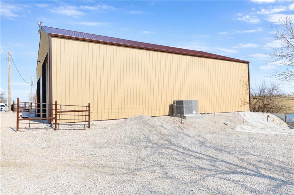 Discover the perfect blend of country living and modern convenience with this impressive 2,560 sq ft barndominium set on 11 beautiful acres. This spacious home features 4 bedrooms, 2 bathrooms, and an office, offering plenty of room for both everyday living and working from home. The primary suite includes a massive walk-in closet and an en-suite bath with a private toilet room for added comfort. The spacious kitchen and living area are ideal for entertaining, complete with a large island, dishwasher, and stainless steel appliances. Just off the kitchen, you’ll find a mudroom/laundry room equipped with a water softener. Enjoy peaceful outdoor living on the covered patio that wraps around the front and side of the home, or relax by the above-ground pool with a deck. The property also features a newly built, fish-stocked pond and a storm bunker located near the house. This property is exceptionally well-equipped with six additional structures. The standout is a 40’ x 60’ climate-controlled shop with 16’ walls, three garage doors, a vehicle lift, compressor, washer and dryer, and ample space to store a camper or RV. Across from the shop is a 45’ x 32’ garage with 12’ walls, three garage doors, and a side entry door. Adjacent is a 20’2” x 25’ carport for additional covered parking. For agricultural or hobby use, the property includes a 30’ x 40’ barn with 10’ walls, gravel floor, walk-in side door, and front sliding door, plus a 20’ x 40’ lean-to with dirt floor. There is also a 60’ x 14’9” hay barn with 11’8” walls and a gravel floor. Next to the shop, a cozy cabin used as a game room (Games come with property) offers heat and air, carpet flooring, and versatile space for guests, recreation, or a private retreat. With room to roam, extensive improvements, and endless possibilities, this unique property is ready to fit a variety of lifestyles. Buyers are encouraged to verify all measurements and details to their satisfaction. Property is being sold as-is.