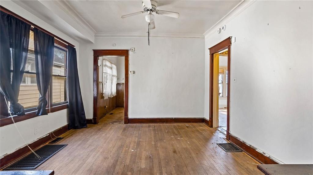 This 2-bedroom, 1-bath single-story home offers 802± finished square feet and includes a 1-car detached garage on a 4,870± SF lot. Hardwood floors run throughout the main level, and the home features convenient main-floor living. The property includes a full, unfinished basement, forced air gas furnace, forced air electric A/C, and updated electrical. Recent exterior improvements include a new covered front porch and covered back deck. Ideal renovate-and-rent or flip opportunity. Selling As-Is. All contents currently in the home & garage will be included in the sale. Don’t miss this opportunity to bid your price!