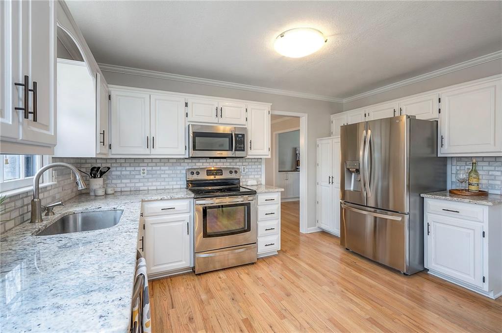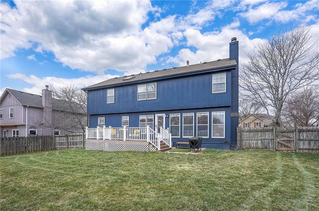 TONS OF UPDATES! COME SEE THIS BEAUTIFUL 2 Story in HIGHLY SOUGHT AFTER Blue Valley School District! This is a SHOW STOPPER! Move-in Ready, STYLISH and MODERNIZED! Bright formal spaces with custom California Closets built-ins, DESIGNER Kitchen with granite + stainless appliances, and SPACIOUS FAMILY ROOM with classic brick fireplace and built-ins. Newer mechanicals, New front/back doors, REMODELED LAUNDRY ROOM, Beautiful Refinished Hardwoods, Fresh paint throughout (including garage) and popcorn ceiling removal. All 4 Bedrooms are upstairs with walk-in closets + ceiling fans, plus Bedroom-Level Laundry Room. Spacious Primary Suite with 10x10 bonus nook and REMODELED ensuite bathroom featuring double vanities, soaker tub, separate shower, and large walk-in closet. Enjoy an OVERSIZED GARAGE, MASSIVE 12' x 22' Composite Deck + patio, fully fenced east-facing yard, New grass, removed trees, and Professional Landscape. Close to Green Meadows Park (18 acres) and a QUICK COMMUTE to Hwy 69, BluHawk, and Town Center Plaza. SO MANY UPDATES - SCHEDULE TODAY!