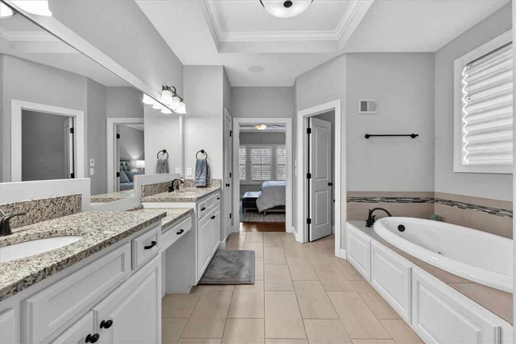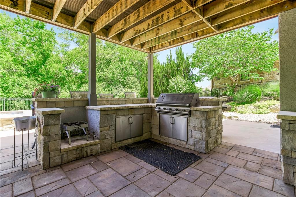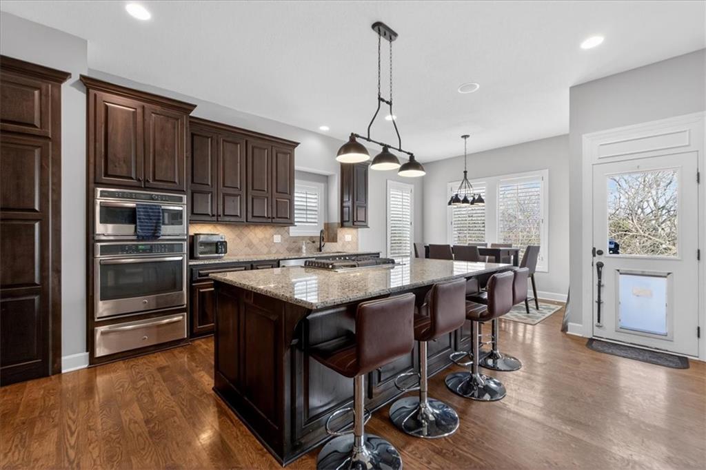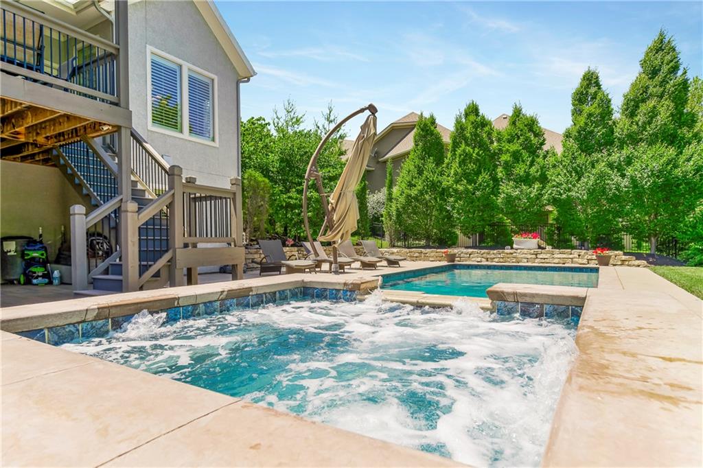 Located in the highly desirable GlenAbbey community of Leawood, this reverse 1.5-story home offers something buyers consistently search for but rarely find: true one-level living paired with a backyard built for real enjoyment. The main floor delivers everyday ease, anchored by a spacious primary suite and a second bedroom—ideal for guests or office use. The layout flows comfortably through a large great room with soaring ceilings and fireplace, into a well-equipped kitchen featuring granite countertops, stainless appliances, generous island space, and direct access to the covered deck overlooking the pool. A butler’s pantry with wet bar, formal dining area, breakfast space, and main-floor laundry tucked off the primary closet add functionality without excess. But this home truly comes alive outside. A saltwater pool and expansive 10-person spa are framed by mature landscaping, a gas fire pit, and a covered outdoor kitchen—creating a private setting that feels more like a retreat than a backyard. It’s the kind of space that turns ordinary evenings into something memorable. The walkout lower level extends the lifestyle even further, with two additional bedrooms, a media area, wet bar, and a dedicated weight room/exercise space. A second laundry room and full bath provide practical access for pool days and guests alike. The suspended three-car garage offers substantial storage and future flexibility. This is not a “showpiece” home. It’s a lifestyle home—solid, spacious, and ready for its next owner to refine and personalize over time. The bones are here. The setting is exceptional. And the opportunity to elevate what already exists is real. In the heart of Leawood, within one of its most established and sought-after neighborhoods, this is a chance to secure space, location, and outdoor living in one package.