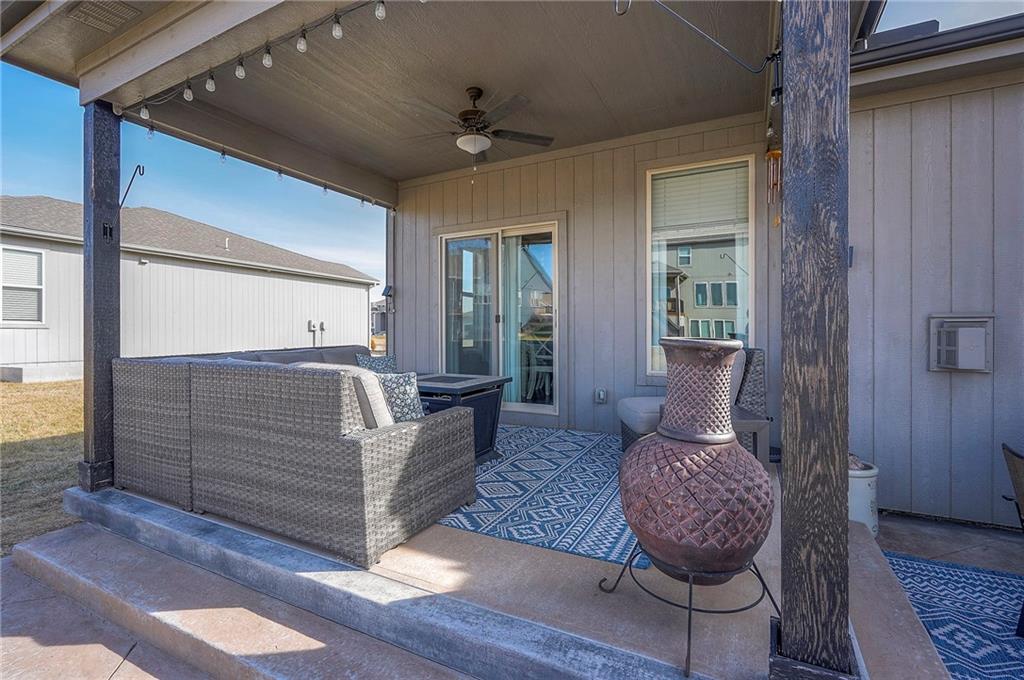 Beautiful ranch in Foxwood Ranch featuring an open floor plan with all 3 bedrooms conveniently located on the main level. The luxury kitchen showcases painted cabinetry, granite countertops, tiled backsplash, wood floors that flow through the kitchen, dining area and great room, plus upgraded brushed nickel plumbing fixtures for a modern touch. Enjoy outdoor living on the 14x10 covered patio with an extended stamped concrete patio, and irrigation system. Maintenance-provided living covers lawn care, fertilizer treatments, sprinkler system maintenance and snow removal. Additional highlights include a 3-car garage and a prime location just 10 minutes to Garmin or I-35, minutes to Sycamore Ridge Golf Course and Hillsdale Lake, and just a few blocks to Wolf Creek Elementary and Spring Hill High School. Community amenities include a state-of-the-art pool, clubhouse, playground and scenic trails — offering comfort, convenience and low-maintenance living all in one. Basement is ready for your design as it includes an egress window and is stubbed for a bathroom.