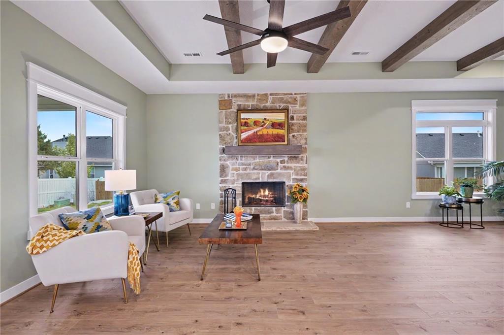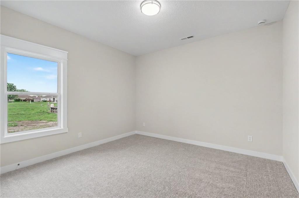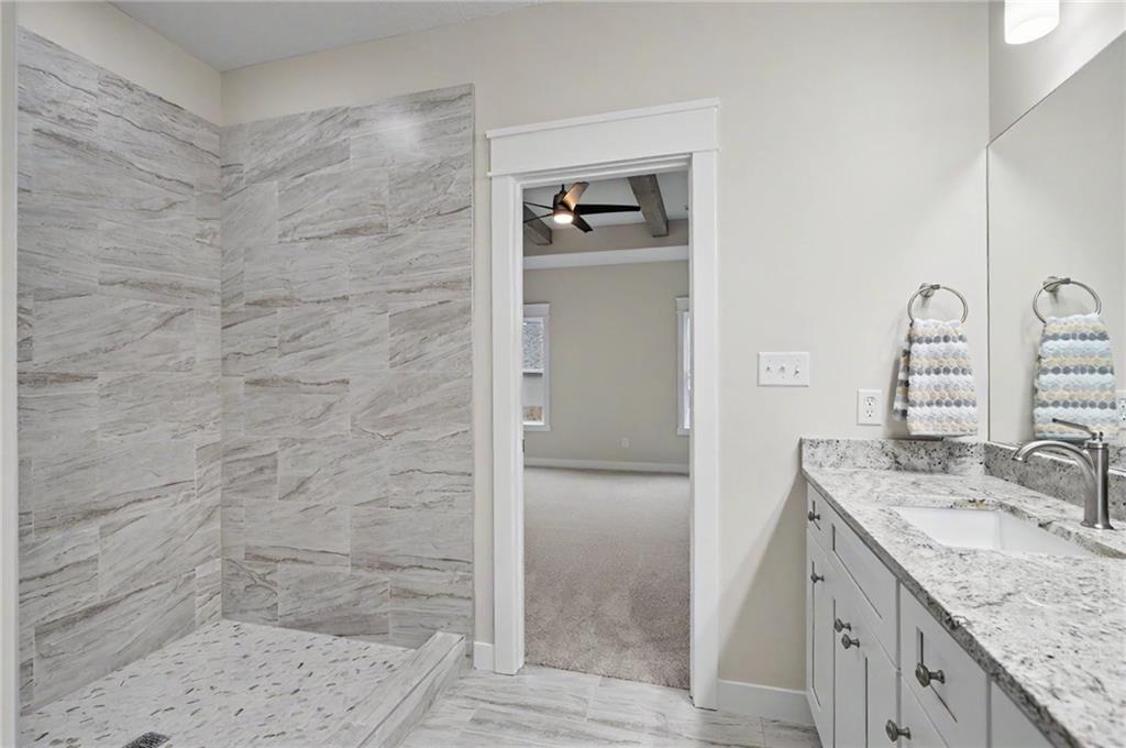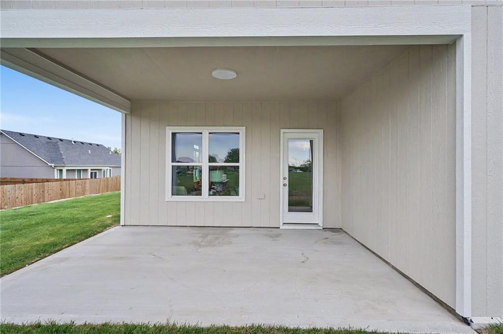 This impeccably built 3 bedroom, 1 and ¾ bath home offers 1,805 sq ft of comfort, quality, and timeless style. A welcoming wainscoted entry, designer interior doors, and quality finishes throughout elevate the home’s character. The kitchen is both functional and inviting, featuring a large island with farmhouse sink, an impressive gas range, and a 47-decibel ultra-quiet stainless steel dishwasher, ideal for entertaining or everyday living. The open living room is anchored by a stunning natural native Kansas limestone fireplace surround, wood burning fireplace made easy with gas log lighter, accented by exposed timber beams that continue into the primary bedroom for a warm, rustic elegance. Retreat to the primary bedroom enhanced by a custom designed accent wall and coffered ceiling, en suite primary bath boasts a large walk-in closet, walk-in shower and double vanity. The generous laundry room with sink adds convenience and practicality. One level living complete with an insulated 3-car garage for added ease and storage. Sound insulation in living areas and bathrooms and an insulated perimeter floor slab enable year-round comfort and quiet living. This thoughtfully designed home offers modern amenities and quality construction; perfect for those seeking space, style, and serenity.