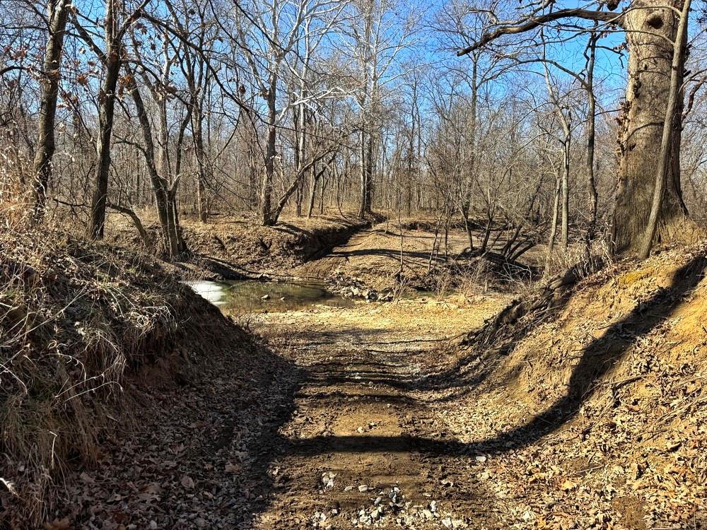 Complete Recreational Package: Land, Cabins, River, Trails, Hunting, Fishing. For sale just 3 miles west of El Dorado Springs, MO in Vernon County, is this 135-acre tract of the most prime recreational property around. This farm boasts 1.2 miles of Clear Creek frontage, scattered food plot fields on the south, timbered ridges on the north, and lush creek bottoms with a wetland slough that can be improved for duck hunting. The ~3-mile trail system on this property is fantastic with quick and easy access for ATV, UTV, and trucks. There are 2 cabins on the property. The first cabin is set at the main gate and is a 16’x24’, single room cabin with a kitchen, bathroom, and sleeping area. The cabin also has an outdoor shower, 14’x16’ covered deck, circle drive, firepit area, and 15’x20’ storage building with a 14’x20’ attached lean-to. The property is improved with rural (public) water, electric, small septic, and fiber internet (available). The second cabin is completely off-grid, sits on the northwest corner of the property, and is primitive in nature. The setting is on a bluff above Clear Creek surrounded by hardwood trees. This cabin is 16’x20’ with a large deck and firepit area. It showcases 1 large room with a kitchenette area, living room, wood stove, bathroom, and large-window views. A small solar system provides the electrical needs, and water can be hauled in for use. If you want a secluded cabin with an adventure, this is the place! Recreational properties with this location and improvements are rare to find, so call today to set up your private tour!