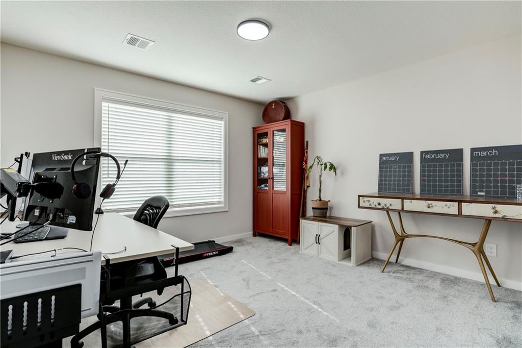 Welcome to your dream home featuring thoughtful upgrades and stylish finishes throughout! Step inside to beautiful hardwood flooring in the Entry, Breakfast Area, Kitchen, Dining/Office (with elegant French doors), and Great Room — with recently added hardwood stair landings for a timeless appeal. Light and privacy are enhanced with the 2-inch faux wood blinds. The heart of the home boasts a modern kitchen with striking graphite quartz countertops, upgraded enamel cabinetry, and seamless functionality. A convenient, built-in mud bench at the garage entry keeps everyday organization effortless. Retreat to the spa-like bath with a luxurious free-standing tub — a standout feature that elevates the master bath with the custom tile shower. Additional enhancements include a painted garage interior and a programmable smart thermostat for comfort and efficiency. Enjoy easy outdoor living with the new patio extension and hardscape improvements with a privacy wall. Large back yard and sprinkler system. This vibrant community offers exceptional amenities — including a stocked fishing lake, heated pool with extended seasonal use, playground, picnic shelter, fire pit area, and trails — perfect for fun, relaxation, and connection. Taxes and square footage are estimated.