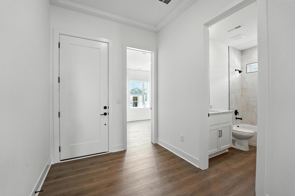 Welcome to the innovative design and modern style of Hakes Brothers Homes! The Hill plan with the Farmhouse elevation offers 1,690 sq. ft. of thoughtfully designed living space all on one level with zero-entry access (NO STEPS!) for convenience and accessibility. This 3-bedroom, 2 bath ranch features soaring 10-foot ceilings that create an open, airy feel throughout the main living areas. The gourmet kitchen is a showstopper with quartz countertops, custom cabinetry, stainless steel appliances, a gas cooktop, and a large island perfect for cooking and entertaining. The spacious great room is the perfect place to relax and enjoy your favorite shows, complete with an oversized 8-blade ceiling fan. The private primary suite offers a tranquil retreat with a spa-like bath featuring a zero-entry tiled shower, linen storage, and a walk-in closet. Step outside to the charming covered patio, ideal for morning coffee or evening relaxation. Discover the charm of Hidden Hills, a vibrant community that truly has it all!