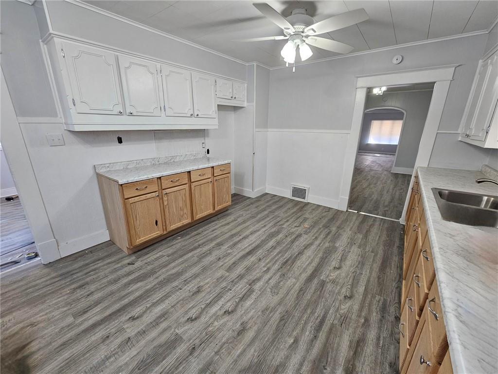 This home will surprise you with the space it offers, inside and out! With new flooring throughout and most windows being newer, it offers a large living room with separate alcove, perfect for an office of play area. Like a dining room? You got it! Bright and airy kitchen with new lower wood cabinets in a natural wood tone, new countertops, lighting and flooring. Main floor bedroom has its own full bathroom. Off the kitchen is an enclosed porch, perfect for a fabulous pantry. Head down the stairs to another living room space and a second bedroom and a third non-conventional bedroom, perfect for guests or kids to have their own setup to play games or watch TV and sleep. Although the home sits up from the road, you will be surprised - the entire yard is spacious - wonderful for level entertaining and play space (football, anyone?), including a shed/chicken coop and extra parking in addition to the garage and driveway.