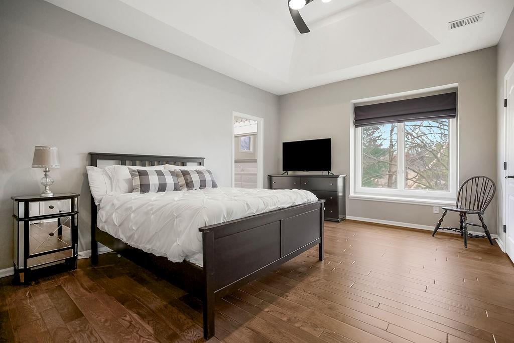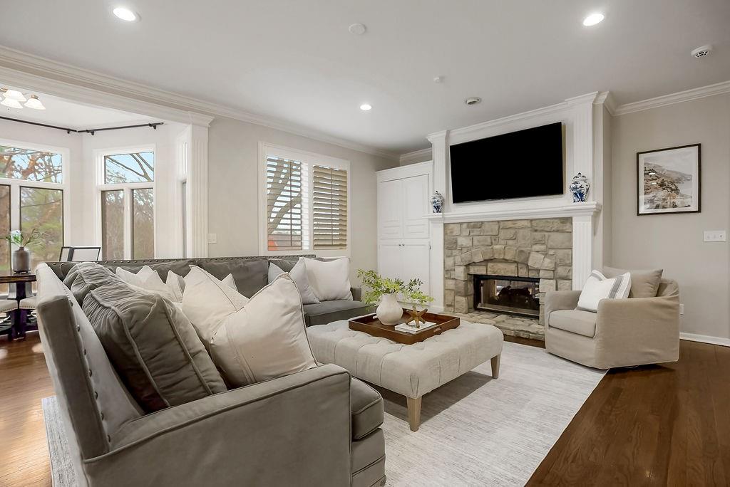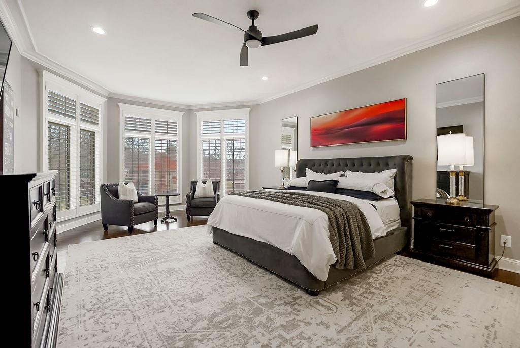 Offers due 3/7 @ noon. Exquisite Estate nestled on an oversized, cul-de-sac lot, this stunning brick estate offers exceptional privacy, timeless architecture, and an expansive floorplan designed for both entertaining & everyday luxury. A charming covered front porch welcomes you into a home defined by soaring two-story ceilings, rich hardwood flooring, and a seamless open layout filled with natural light. The gourmet kitchen is a true showpiece, appointed with double-thick marble countertops, an oversized island, built-in refrigerator, Thermador 6-burner range with griddle, Thermador dishwasher, Blanco sink with new faucet & designer finishes throughout. The kitchen flows effortlessly into the inviting hearth room, creating a warm and sophisticated gathering space. A spacious living room and private first-floor office with custom built-ins provide both elegance and function. The main-level primary suite is a serene retreat featuring hardwood floors, plantation shutters, and a beautifully appointed spa bath with heated marble flooring, double sink vanity, walk-in shower, freestanding soaking tub & generous custom walk-in closet. Upstairs, you’ll find a large loft, oversized bedrooms including a 2nd primary suite, each with well-appointed baths. The finished lower level is designed for entertaining, offering a custom bar with refrigerator, abundant natural daylight, a fully equipped home theater — projector, screen, subwoofer and speakers included, exersize room, full bath & more. Outdoor living is equally impressive with a covered patio, expansive entertaining area with fireplace, newly fenced yard & generous green space. Additional highlights include a side-entry garage with custom flooring, new ceiling fans throughout, tankless water heater, new alarm system, wood flooring & countless thoughtful upgrades. Tucked into a desirable neighborhood just minutes from shopping, dining, and major highways, this exceptional property offers refined living in a premier setting.