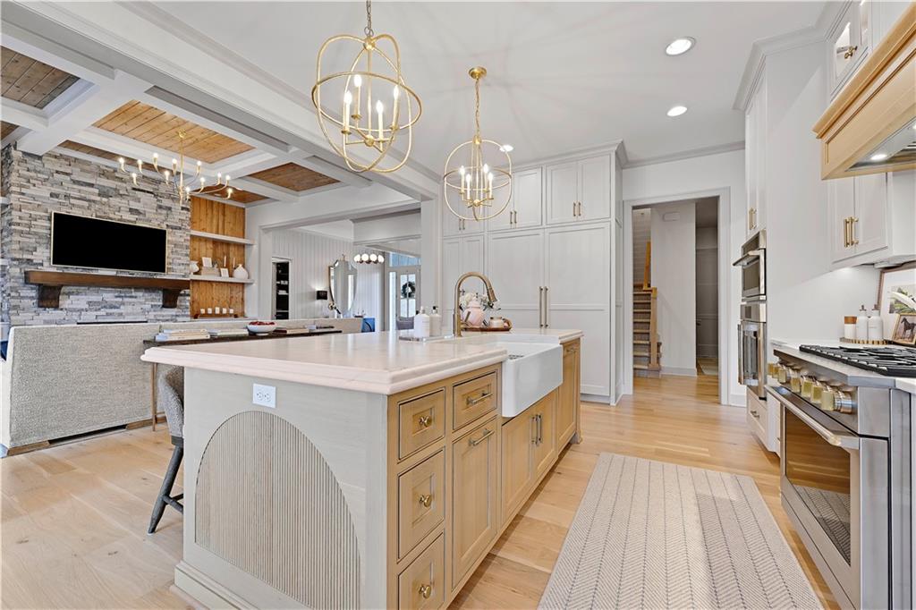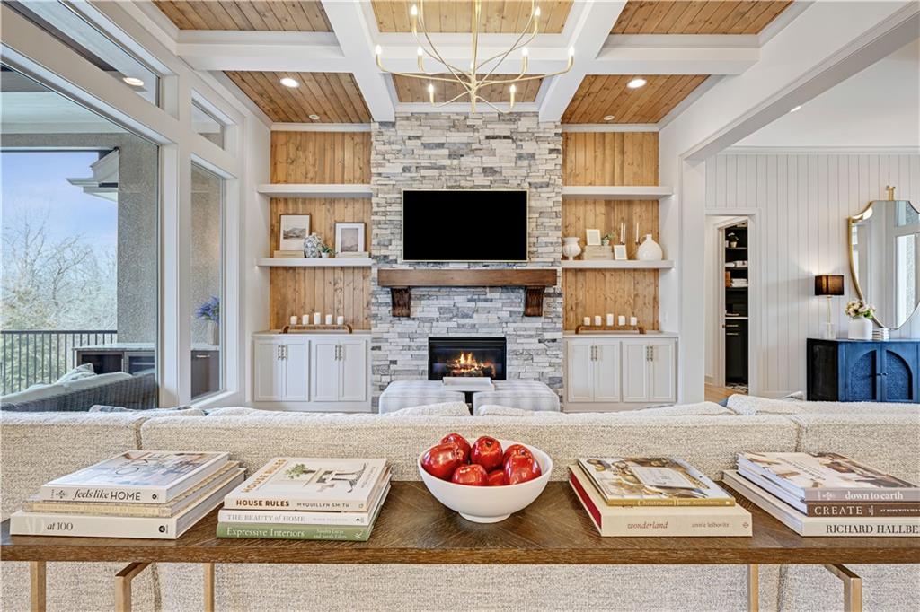 Completely reimagined by the original builder, John Geer and Erica Rigdon of Style & Grace Designs, this stunning Mills Farm 1.5-story with finished lower level is a masterclass in design. Wide plank hardwoods flow throughout, complemented by designer lighting, remote-controlled custom drapery & shades, and gold/brass fixtures at every turn. The main floor wows with a great room featuring stacked stone fireplace, built-ins, and a library-style Tongue&Groove ceiling. The chef's kitchen boasts quartzite countertops, a full-size built-in refrigerator & freezer, 6-burner gas range, pot filler, farm sink, pantry with full sink & ice maker in room adjacent to kitchen. All rooms have meticulously designed cabinetry. The screened porch with stone fireplace, beverage fridge, and staircase to the pool is an entertainer's dream. The private primary suite features a Tongue&Groove tray ceiling, spa bath with heated floors, soaking tub, double shower, and a fully redesigned closet. Continuing on Main Floor, there is a 2nd Bedroom and Full Bath. The Second Floor finds Three additional bedrooms each have en-suite baths, walk-in closets, and designer details. Plus a Loft with built-in cabinetry creates the perfect place to relax, enjoy a game or read. The lower level rivals a luxury resort — a show-stopping wet bar with exotic stone island, full-size fridge/freezer, ice maker & mirrored floating shelves anchors the space alongside a recration room with cast stone fireplace and flex/exercise room. 6th Bedroom and Bath is private retreat for guests or family. Outside, enjoy a gunite pool, extensive decking, covered lower-level pool entry, oversized front porch with bubble fountain, and a charming porch swing. Blue Valley Schools. This home cannot be replicated at this price