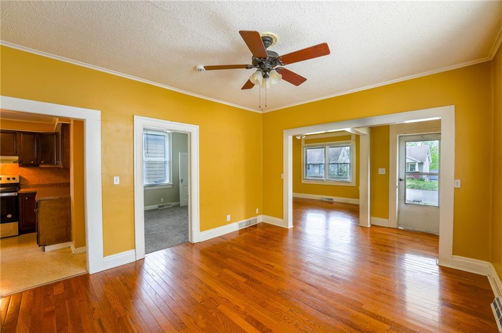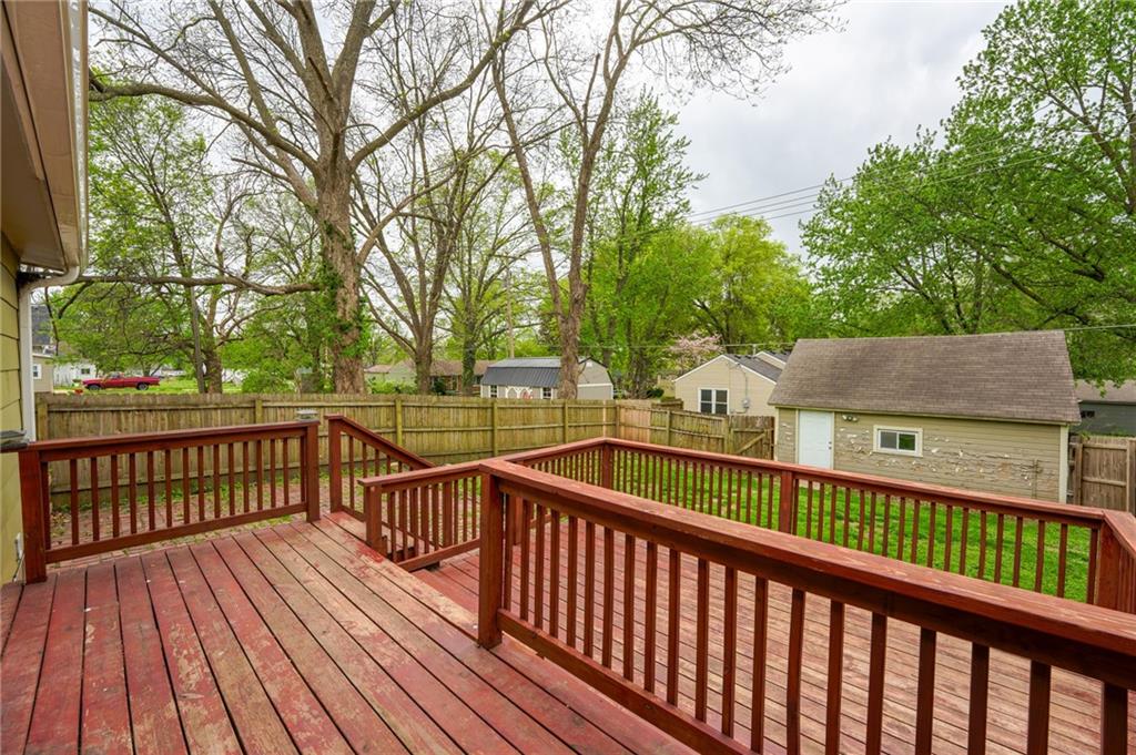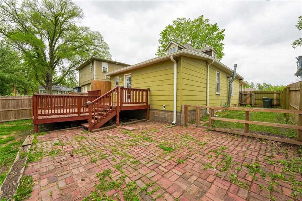 Welcome to the charming neighborhoods of Leavenworth, Ks. This home sits on an established street convenient to everything. This property offers a nice layout with beautiful wood floors, a large deck, privacy fence, driveway, detached garage, for great storage. Selling AS IS. New roof and gutters and water heater in 2024 to give buyers peace of mind.