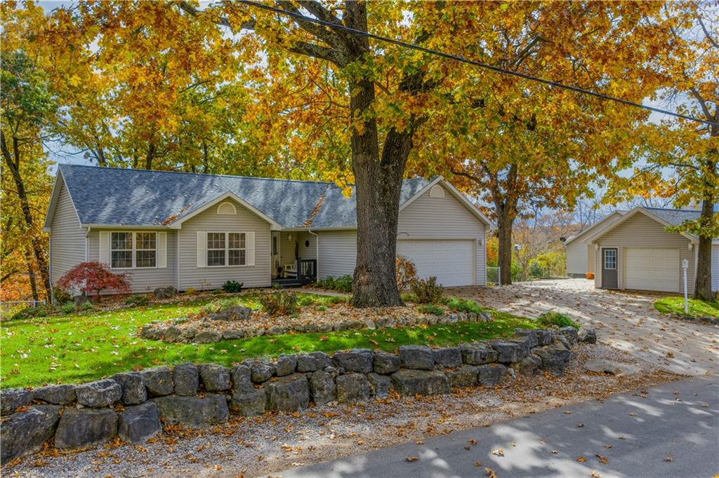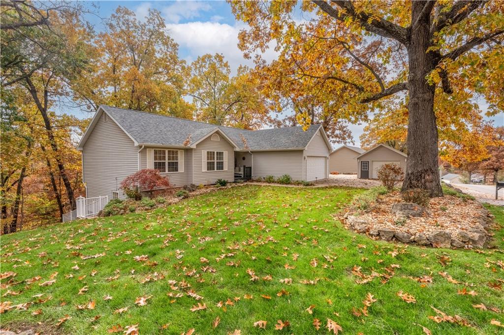 Welcome to 662 Grandview Lane in Linn Creek — a beautifully updated retreat in the heart of Lake of the Ozarks! Nestled on approximately 3 acres, this stunning 5-bedroom, 3 full bath home offers the perfect blend of seclusion, space, and lake-area convenience. Step inside to soaring ceilings, oversized windows, gorgeous lighting, a built-in sound system, and rich hardwood floors that create a warm yet elevated feel throughout. The living room features a cozy gas fireplace and flows seamlessly into the show-stopping kitchen complete with quartz countertops, quality cabinetry, and thoughtful design details that make everyday living and entertaining effortless. The full finished basement expands your living space with room for guests, recreation, or multi-generational living. Enjoy peaceful mornings or relaxing evenings in the sun porch or on the covered deck overlooking the beautifully landscaped grounds. Outdoors, you’ll find meticulous attention to detail — an irrigation system, raised garden beds, lush landscaping, and a custom firepit perfect for gathering with friends and family. A short distance away, enjoy access to the community dock with your own slip, making lake days simple and convenient. Car enthusiasts and hobbyists will appreciate both the attached and detached garages, plus a dedicated RV parking spot for all your lake toys. This property truly checks every box — location, space, updates, and lifestyle. Don’t miss your opportunity to own a slice of paradise at Lake of the Ozarks!