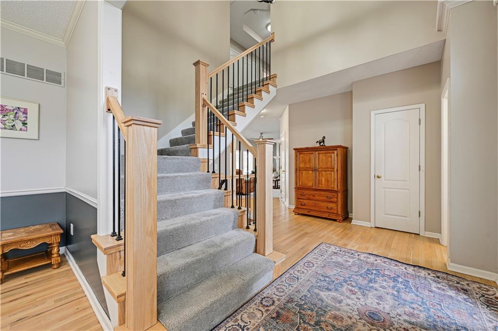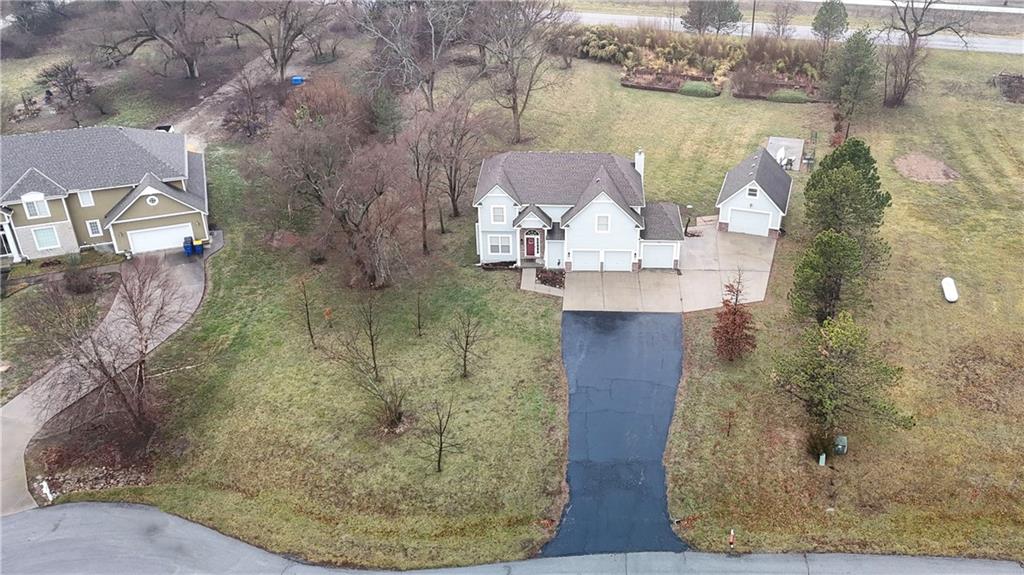 Stunning estate two-story home on 1.2 acres in a quiet cul-de-sac with extensive, mature landscaping! This 4 bedroom, 4 full bath home offers a spacious open floor plan ideal for everyday living and entertaining. The updated kitchen features custom cabinetry, a massive island, and abundant prep and storage space, opening to a light-filled great room with fireplace. The luxurious primary suite boasts a spa-like updated bath and an oversized walk-in closet. Spacious secondary bedrooms plus a private guest suite. The finished basement offers tons of natural light and an additional full bath—perfect for a rec room, home gym, or office. Enjoy energy efficiency with a geothermal HVAC system. Outdoor living shines with a massive patio and pergola, perfect for entertaining. A detached 19’x24’ garage with an 8’x12’ overhead door and floored attic provides excellent storage and workshop space. This rare estate-style property offers privacy, space, and luxury—don’t miss it!