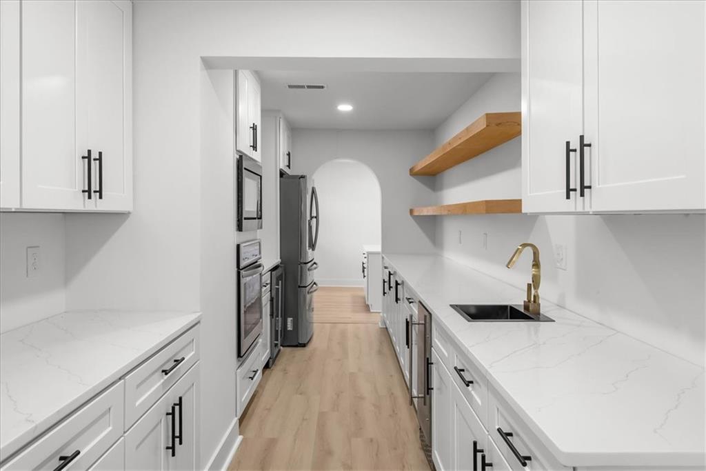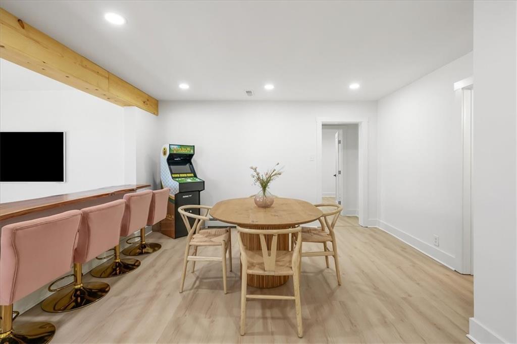 Welcome to your own slice of paradise at the lake! This stunning ranch-style lakefront home at Lake Pomona offers 5 bedrooms and 4 bathrooms, and has been meticulously updated and lovingly maintained. A marble-tiled entry welcomes you into an expansive eat-in kitchen featuring abundant prep space, extensive countertops, and a large center island with seating for four—perfect for gathering with family and friends. Just off the kitchen, a sitting room with louvered folding patio doors opens to a three-season room and onto a renovated deck overlooking the beautifully maintained grounds, complete with a putting green and tranquil pond. The formal dining room is conveniently located just steps away, making entertaining effortless. The main level includes a spacious primary en-suite retreat with a soaking tub, separate shower, and generous vanity. Two additional bedrooms and a full bath with double sinks and a walk-in shower complete the main floor. The finished lower level offers even more living space with a large family room, two additional bedrooms—one currently designed as a bunk room that sleeps eight—plus a full bath and laundry area. Step outside from the lower level to enjoy the fire pit and pathway leading directly to the double dock. Designed for making memories, this exceptional lakefront property is the perfect weekend escape for large families and year-round enjoyment.