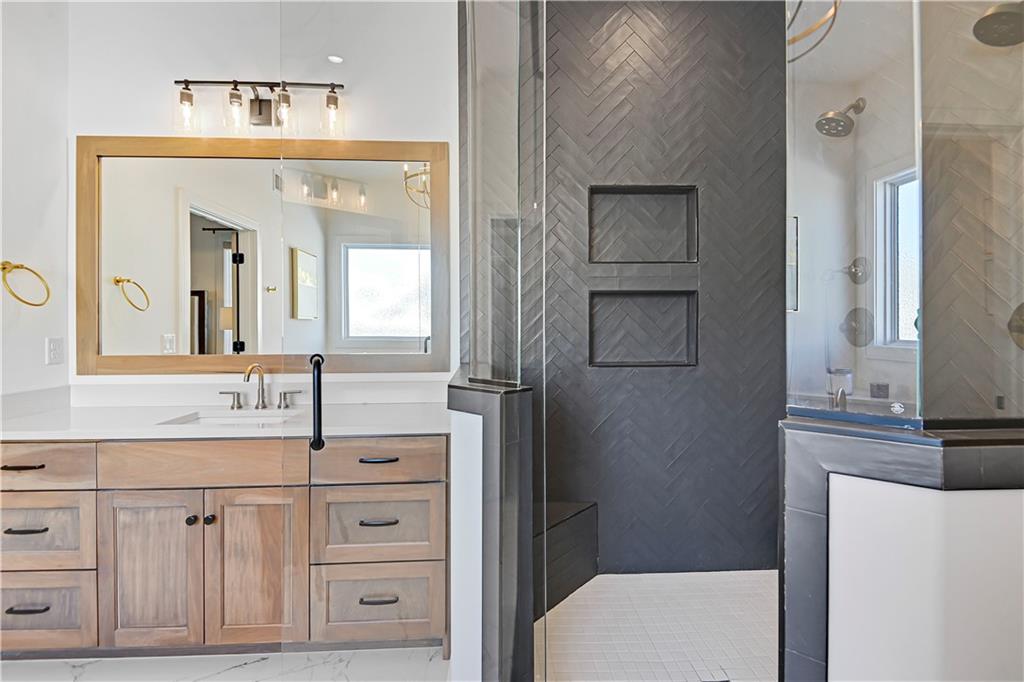 Welcome to an extraordinary 1.5-story estate where refined design and elevated living converge. This stunning 5-bedroom, 5.1-bathroom residence showcases impeccable craftsmanship and thoughtful architecture, offering the perfect balance of elegance and everyday comfort. From the moment you enter, you’re greeted by soaring ceilings, an abundance of natural light, and high-end finishes throughout. The open-concept floor plan flows seamlessly through expansive living and entertaining spaces, accentuated by custom window treatments and designer touches at every turn. At the heart of the home lies a chef’s dream kitchen, appointed with quartz countertops, a porcelain farmhouse sink, pot filler, upgraded stainless steel appliances, an oversized island, and a walk-in butler’s pantry — ideal for hosting on any scale. The main-level primary suite is a true sanctuary, featuring a spa-inspired bath and a custom-designed walk-in closet system. A cozy great room with fireplace, formal dining room, private office, and a mudroom with built-in cabinetry complete the main level. Upstairs, you’ll find a spacious loft and three well-appointed secondary bedrooms — each with its own ensuite bathroom, including an expanded guest suite. The fully finished lower level is an entertainer’s paradise with a fifth bedroom and bath, wet bar with porcelain tile, a wine cellar, fireplace, and a versatile recreation area. Step outside to a serene, covered and screened-in deck overlooking the beautifully landscaped, fenced yard — perfect for outdoor living and entertaining. Additional luxury upgrades include: Wide-plank upgraded flooring in the primary suite, Custom solid-core doors throughout, Built-in speaker system (great room, kitchen, lower level, deck), Epoxy-coated garage flooring and additional parking pad and Custom concrete grilling station. No detail has been overlooked in this exceptional residence. Don’t miss the opportunity to call this remarkable property home.