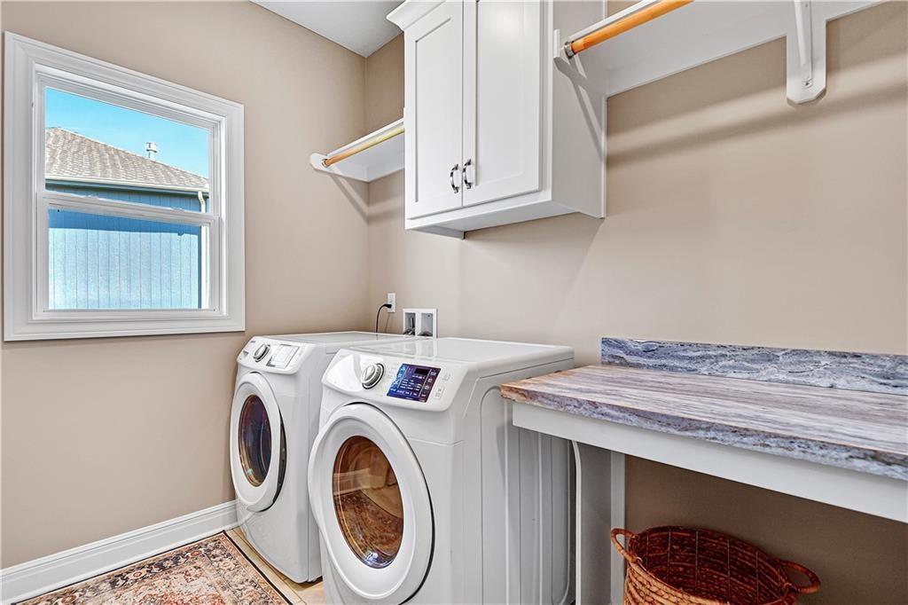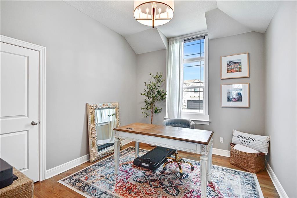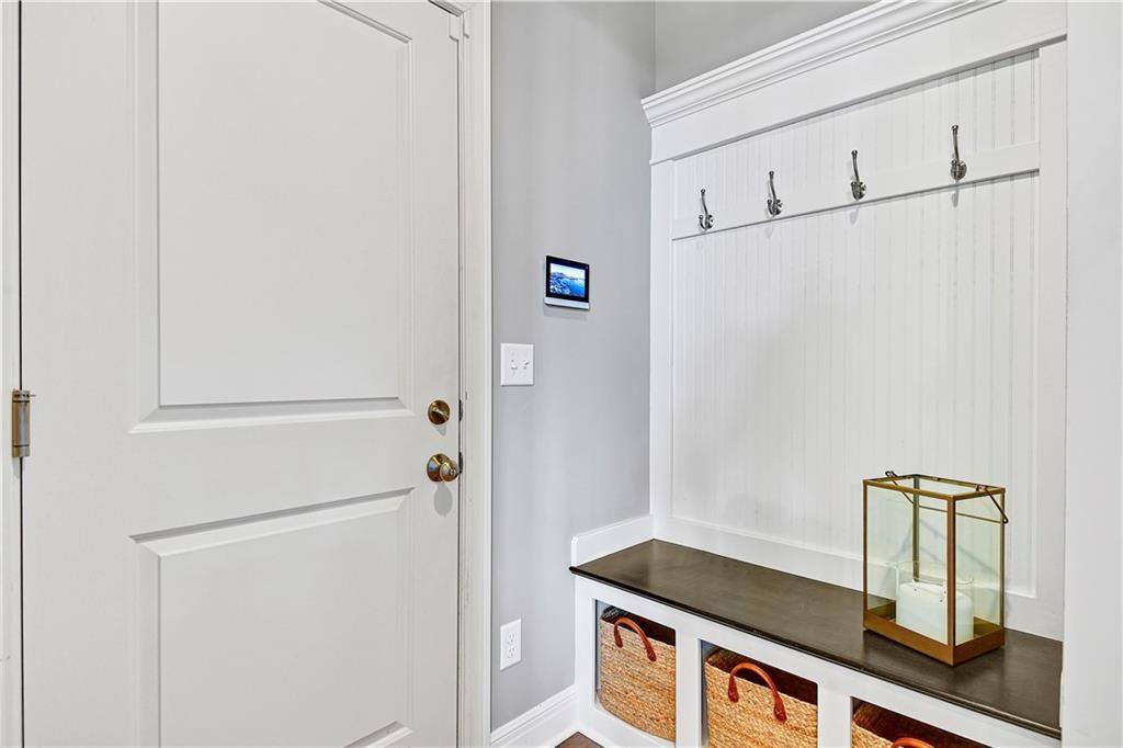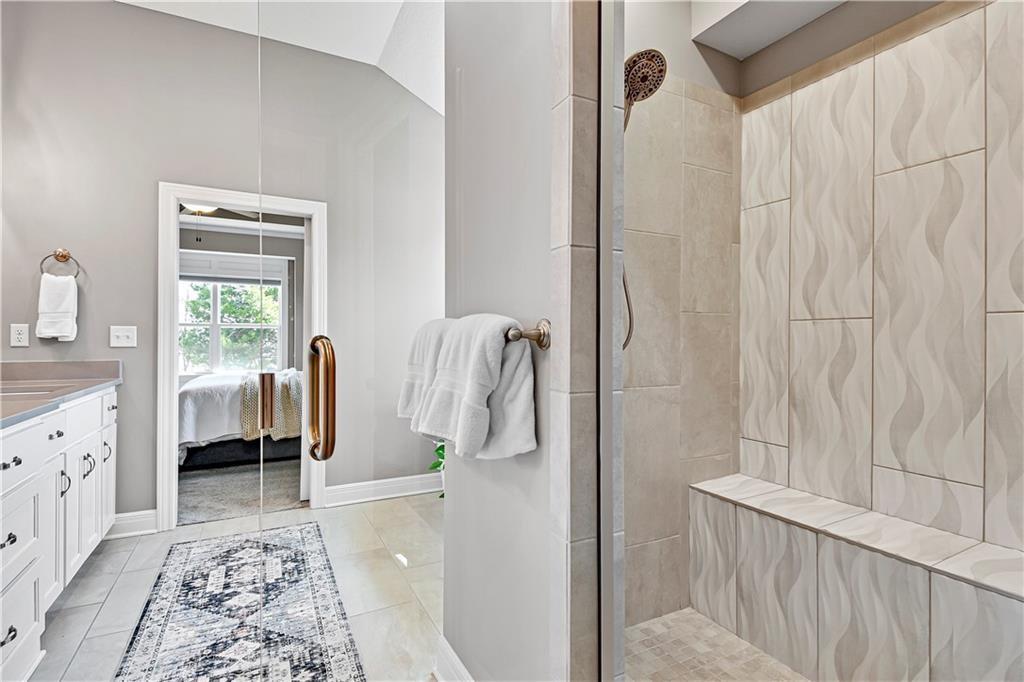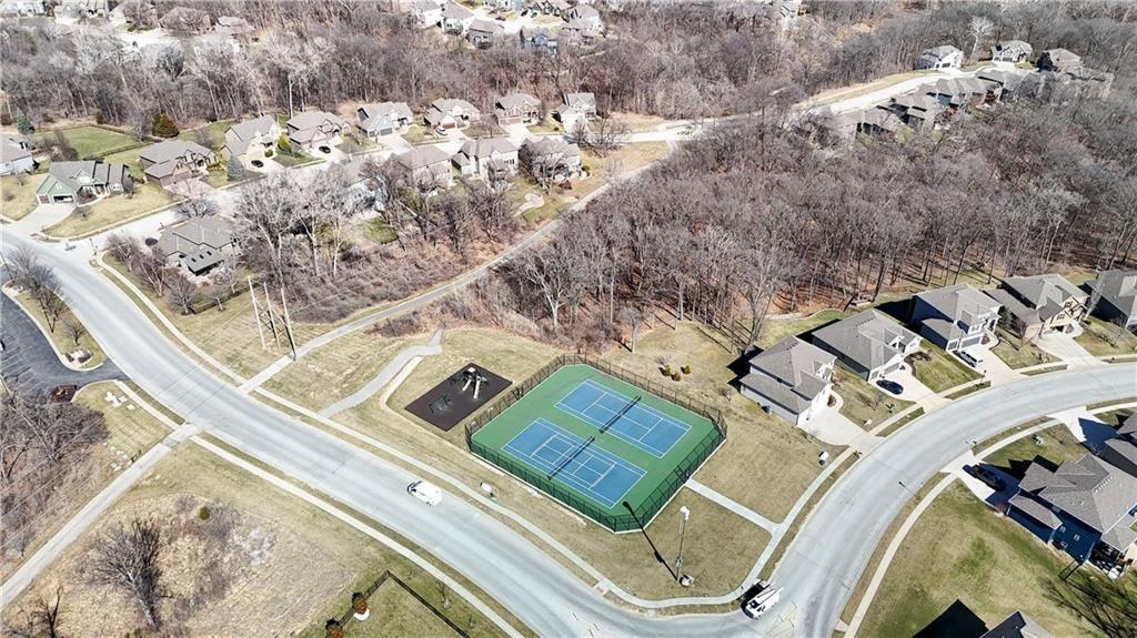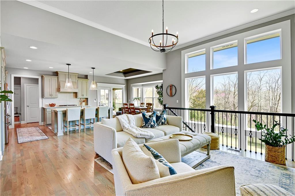 Stunning Reverse 1.5 Story in a fantastic neighborhood with fabulous amenities. This home backs to green space for privacy and views! Walk in to a wall of windows that take in the beautiful treed green space. There is an office or guest room at the front of the home and full bath. The primary bedroom is a delightful retreat with high ceilings & great views and a spacious and modern ensuite with separate tub & shower, double vanities & a huge walk-in closet. The kitchen is great for entertaining with an oversized island, neutral colors and classic design choices. You will fall in love with the covered deck that was greatly improved with an automatic, remote controlled MagnaTrack rolling screen that is engineered to withstand hurricane force winds and with the screen woven so tight it actually adds privacy (you can easily see out, but you can't see in), it blocks the sun, wind, bugs, and creates such a comfortable atmosphere that the sellers use that space year round. The walkout lower level has a wet bar area which makes the recreation room truly functional. There are two more guest rooms & a full bath and two separate storage areas. The back yard is fenced with iron fencing, so no maintenance, and strong enough to withstand a tree falling. It has 3 gates and is built in sections making it ideal for the long term. The garage floor has been epoxied. Integrated water softener system stays. Alarm system stays including window sensors. Interior freshly painted with highest grade of Sherwin Williams paint. Close to the pool & tennis, but very quiet street as there is not a lot of through traffic. Deck & railings were stained recently. All shower heads were replaced and kitchen faucet was replaced. Home has been professionally cleaned every 2 weeks and windows have been professionally cleaned inside and out every spring. Neighborhood amenities include multiple lakes/ponds with live fishing, hiking/biking trails, playgrounds, 2 pools, tennis & pickle ball court...