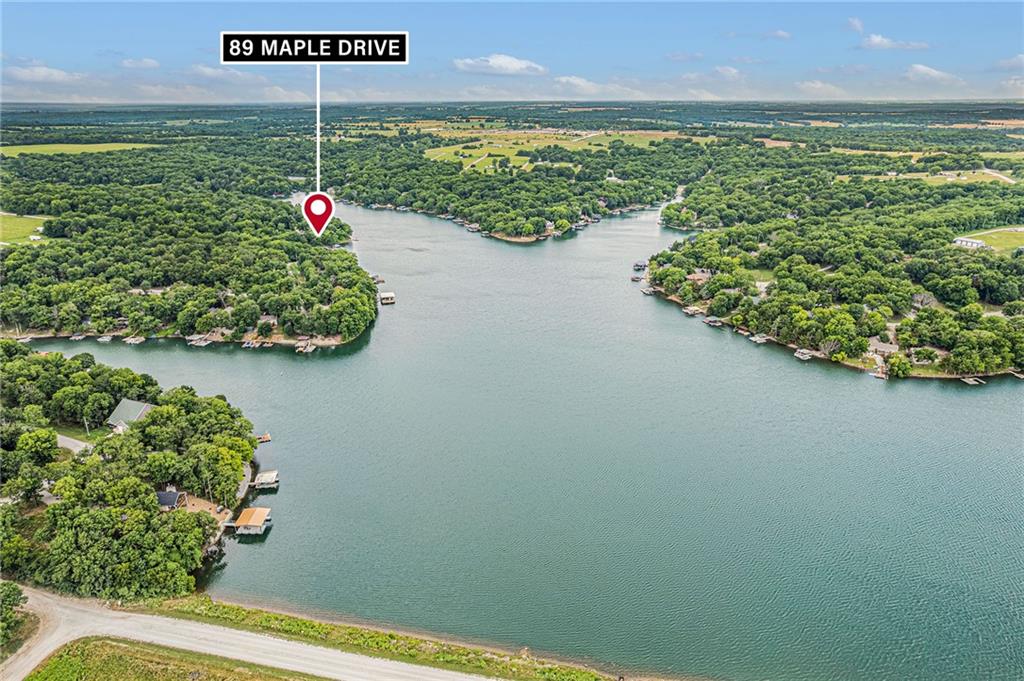 From 69 highway: Take HWY 52 west towards Mound City. Turn right on E 850th Rd towards Mound City. Turn left on Paine Rd, then turn right after 1.5 miles. Turn left on Mine Creek Dr. Turn left on E Sugar Lake Dr. Turn right on Elm Dr. Turn right on Maple Dr., property is at the end of the street on the left.