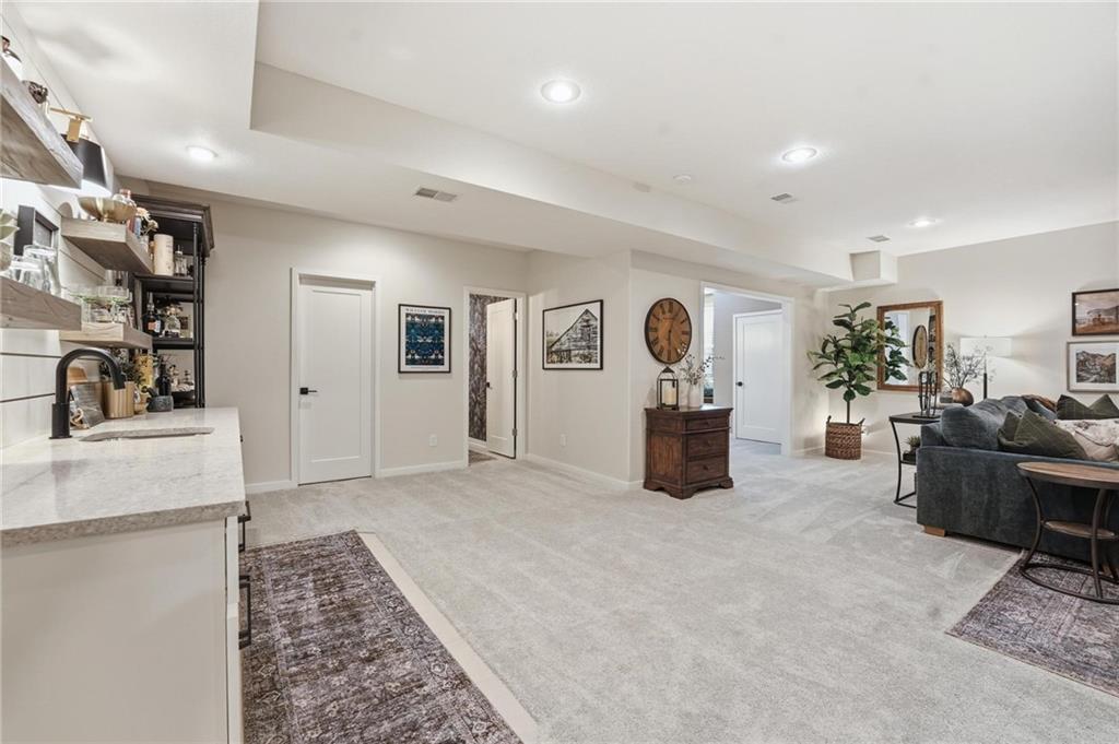 Welcome home to refined luxury and timeless elegance. TRUE RANCH, meticulously designed w/gleaming hardwoods that lead you through the sunlit living spaces adorned with designer touches from Pottery Barn and Restoration Hardware. Upgraded lighting, plantation shutters, and sophistication can be found thru-out. The main floor features 3 bdrms, including the stunning primary suite. Behind a chic barn door lies a spa-inspired bath with floating vanities, designer tile, quartz countertops, a walk-in shower w/dual shower heads, and a custom walk-in closet with a built-in dresser, and connects to the laundry room. Bedrooms 2 & 3 are also on the main floor with a full bath. The heart of the home is a chef’s dream kitchen w/upgrades that include: quartz counters & breakfast bar, white cabinets, upgraded S/S appliances w/gas range & hood vent, under-cab lighting, walk-in pantry, and a coffee bar adjacent to the screened-in porch, or patio offering the perfect spot to savor your morning coffee. The finished LL is an entertainer’s dream featuring a family room with custom built-in cabinets & entertainment center, a sleek linear fireplace, complemented by the wet bar with quartz-and-shiplap finishes. You’ll also find a game room, a “secret room” that leads to the gym, and a 4th bedroom. It’s the perfect place for those unexpected guests. Complete with a 3rd full bath, and tons of storage space. The outdoor features are just as impressive, with a screened-in porch, remote-controlled Gemstone ext lighting, fenced yard, sprinklers, and a cozy front porch. The 3-car garage provides ample room for the cars & the big boy toys! Additional upgrades include: fresh Cashmere paint, upgraded LED lighting, newer carpeting w/premium pad, iron spindles, wainscoting, and shiplap accents. The roof and HVAC are only 7 years young, providing peace of mind for years to come. More than just a house, this is a lifestyle. Experience the perfect blend of sophistication, comfort, and functionality!