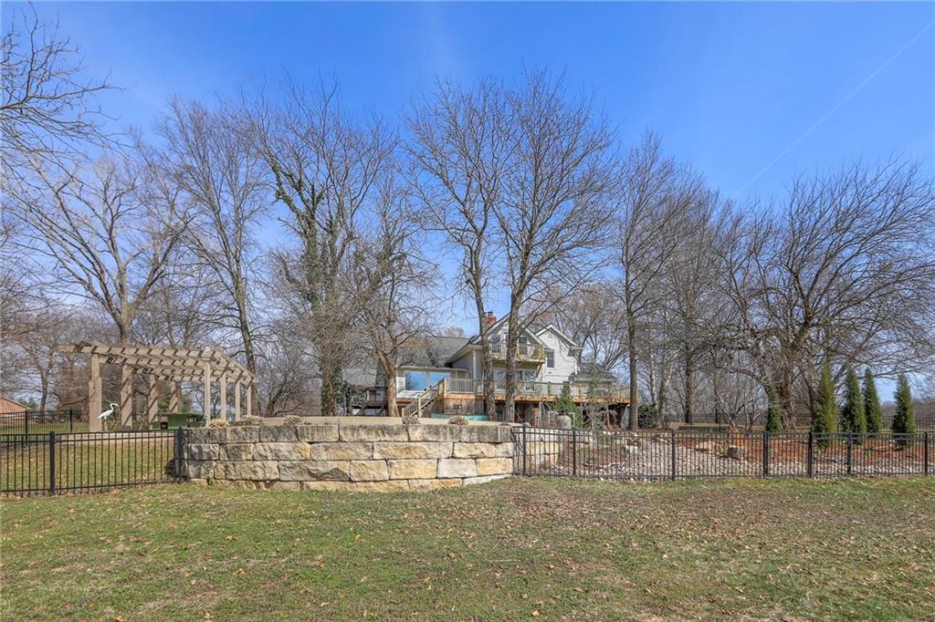 Set on nearly 3 acres of park-like grounds within a quiet, established neighborhood in the Lee’s Summit School District, this 1.5-story home is the perfect place to raise a family and host unforgettable gatherings. The interior is designed for entertaining, anchored by a huge custom kitchen featuring a large island, a propane stove, double ovens, and commercial-grade appliances including a dedicated ice machine and wine refrigerator. The space flows into an informal dining area and a versatile room that serves as a massive walk-in pantry or formal dining space. With two distinct living areas—a main-level great room and a large basement family room, both featuring cozy wood-burning fireplaces—there is plenty of space for family movie nights or hosting friends. Just off the kitchen, a massive main-level laundry room and a dedicated drop zone keep the household organized. The layout is built for family life, featuring a main-level primary suite with a private ensuite and a huge walk-in closet, along with a small office for remote work. The upper level houses three additional bedrooms, including one with generous attic storage. The lifestyle extends outdoors to a private backyard oasis. A saltwater inground pool serves as the centerpiece, surrounded by extensive decking with ample room for seating and a nearby fire pit. The yard is enhanced by custom landscaping featuring a variety of perennials and plants designed to bloom year after year. The walk-out basement includes a full bathroom and plenty of unfinished storage space, while the detached garage provides extra room for a workshop or storage—all just minutes from town.