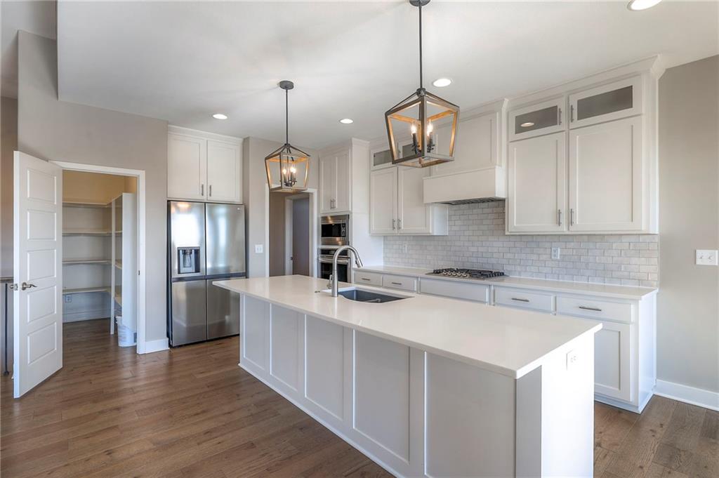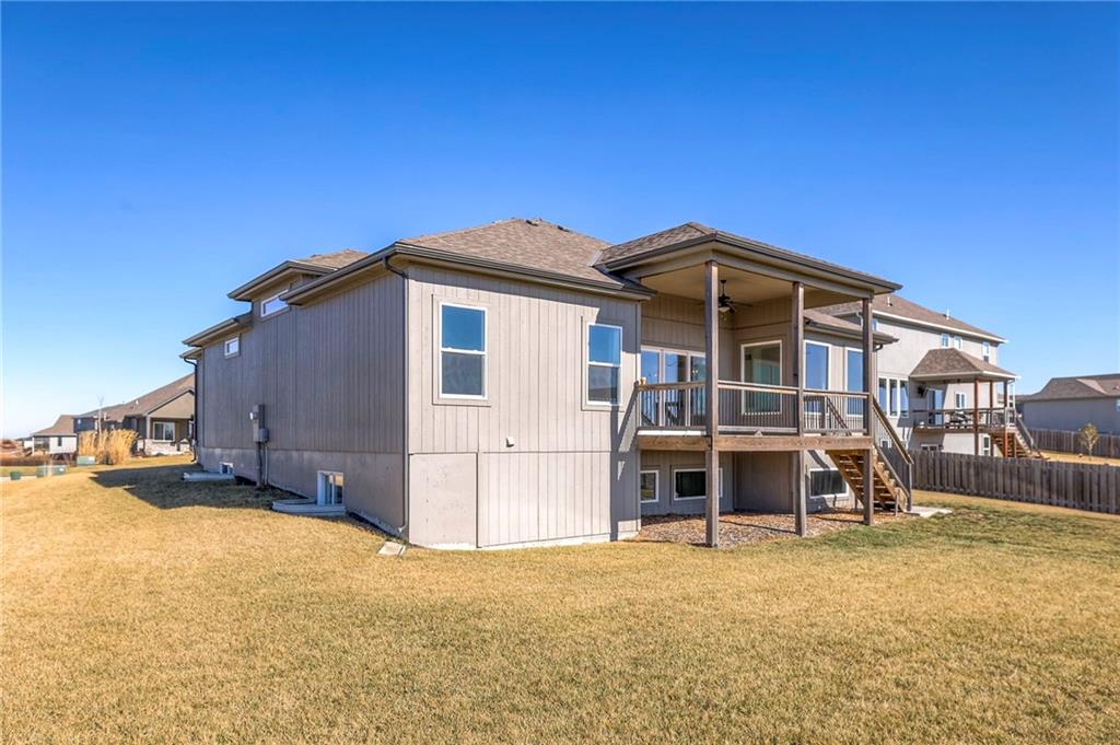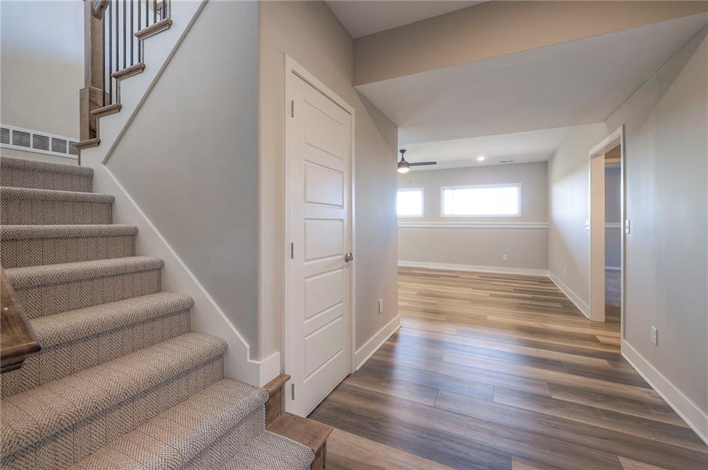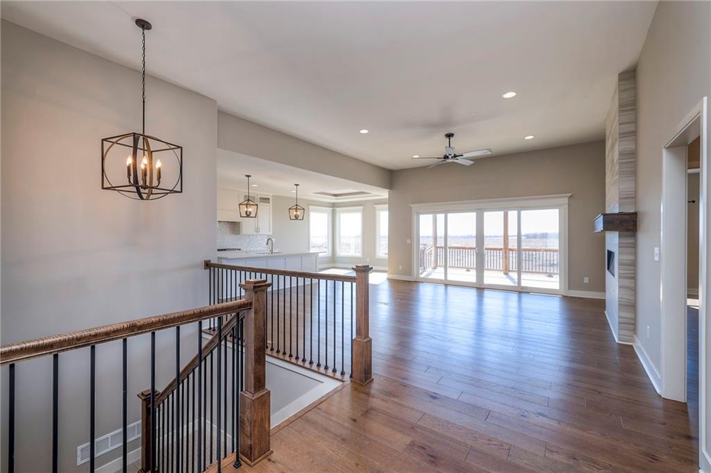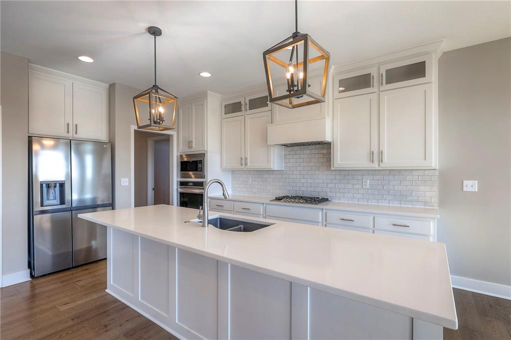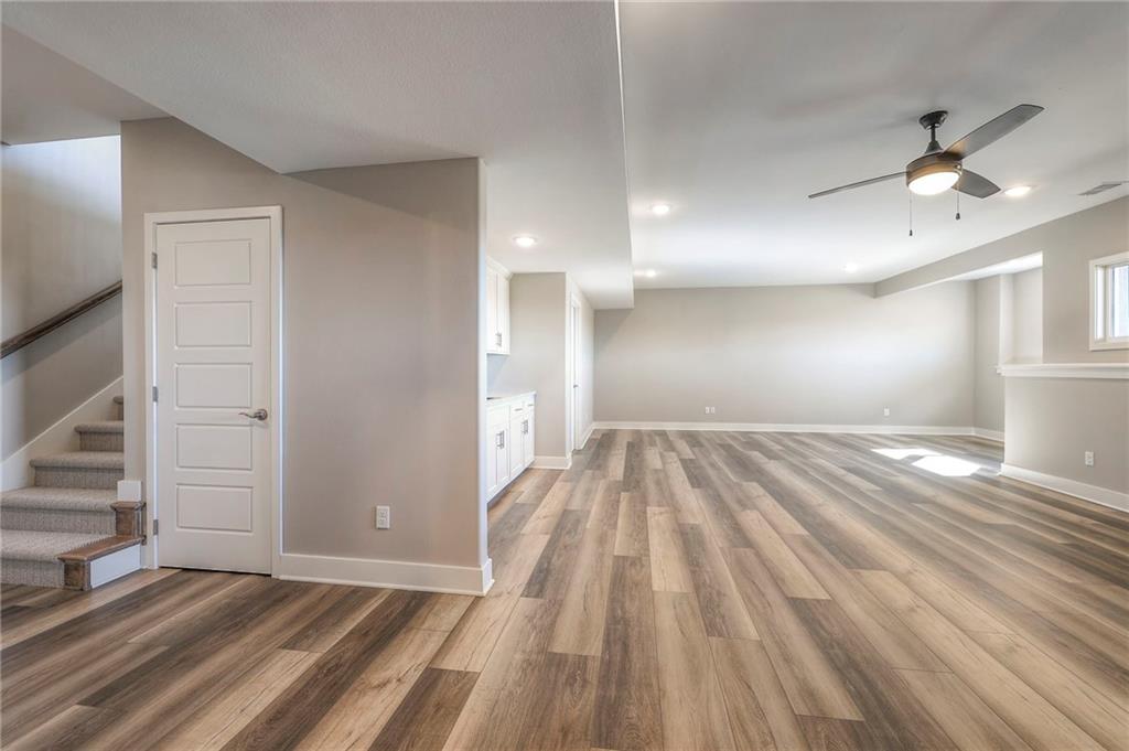 Beautifully maintained reverse 1.5-story home built in 2022 offering nearly 2,900 sq ft of thoughtfully designed living space. This 4-bedroom, 3-bath home features an open-concept main level filled with natural light, a spacious living area, and a well-appointed kitchen with large island, abundant cabinetry, hardwood floors throughout the main leveland adjoining dining area that walks out to a covered deck—perfect for relaxing or entertaining. The main-floor primary suite includes a private bath and generous closet space, along with a second office and convenient laundry for true main-level living. The finished lower level provides a large recreation room with wet bar, two additional bedrooms, laminate flooring and a full bath, plus large, oversized windows in the basement allowing for natural light. This home is located in a desirable neighborhood with quick access to shopping, dining, and major highways, this move-in-ready home offers modern finishes, functional layout, and excellent space for everyday living and gatherings.