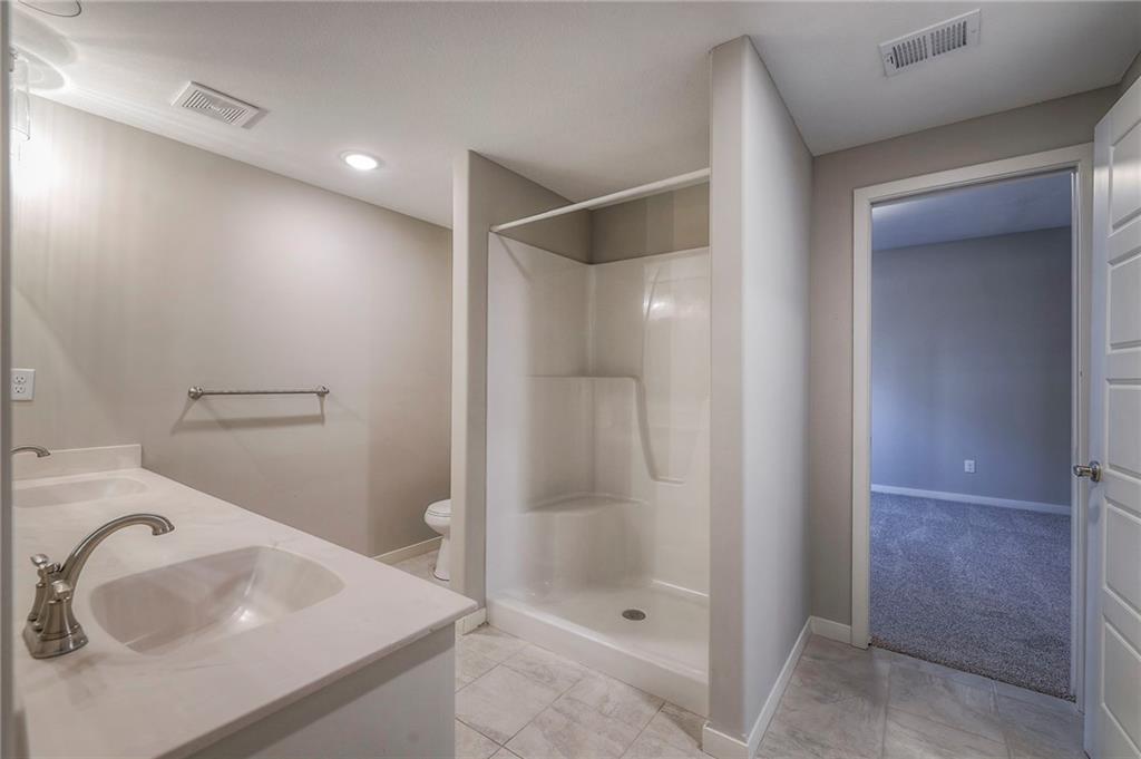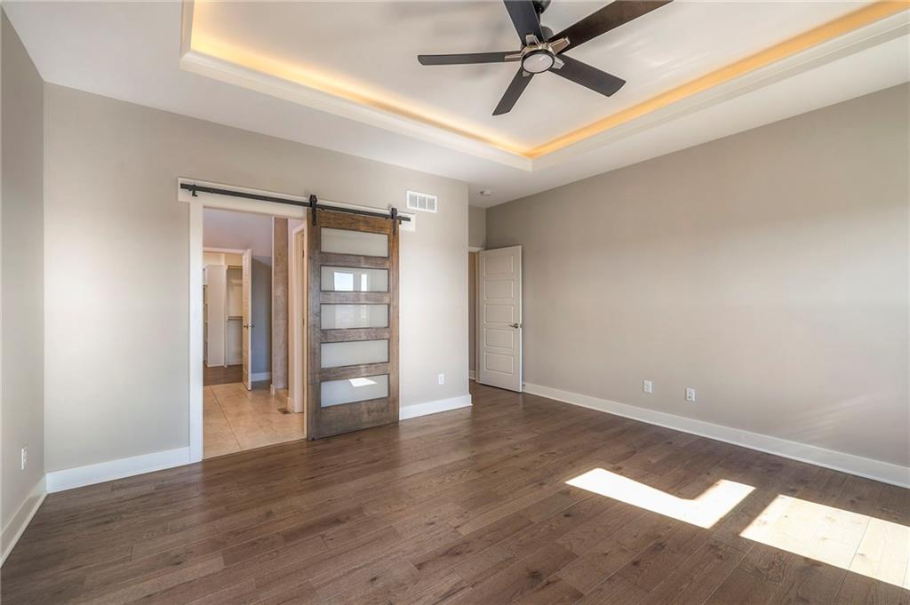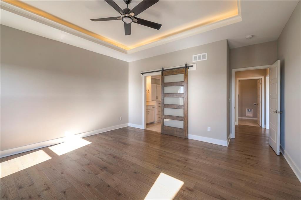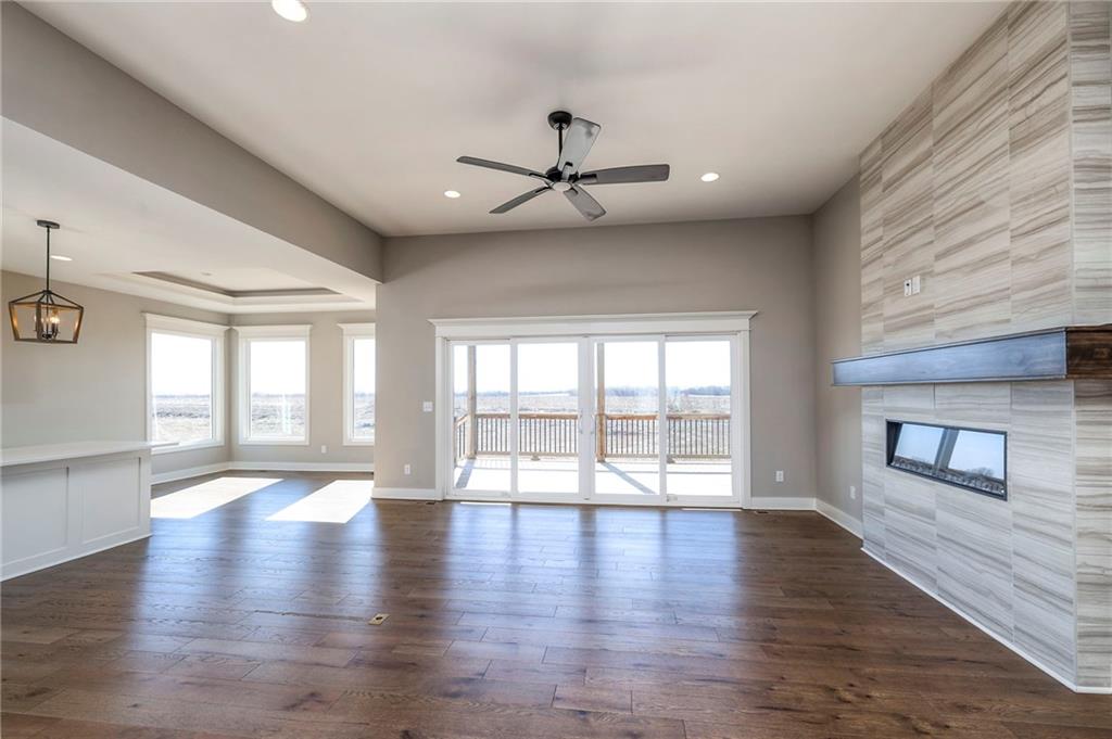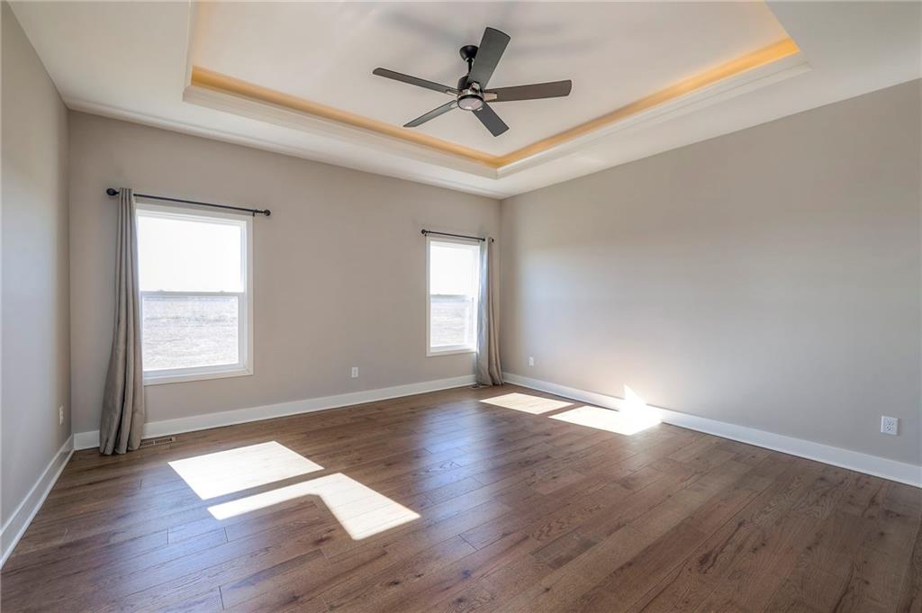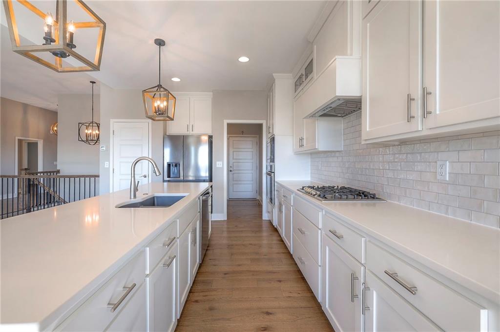 Beautifully maintained reverse 1.5-story home built in 2022 offering nearly 2,900 sq ft of thoughtfully designed living space. This 4-bedroom, 3-bath home features an open-concept main level filled with natural light, a spacious living area, and a well-appointed kitchen with large island, abundant cabinetry, hardwood floors throughout the main leveland adjoining dining area that walks out to a covered deck—perfect for relaxing or entertaining. The main-floor primary suite includes a private bath and generous closet space, along with a second office and convenient laundry for true main-level living. The finished lower level provides a large recreation room with wet bar, two additional bedrooms, laminate flooring and a full bath, plus large, oversized windows in the basement allowing for natural light. This home is located in a desirable neighborhood with quick access to shopping, dining, and major highways, this move-in-ready home offers modern finishes, functional layout, and excellent space for everyday living and gatherings.