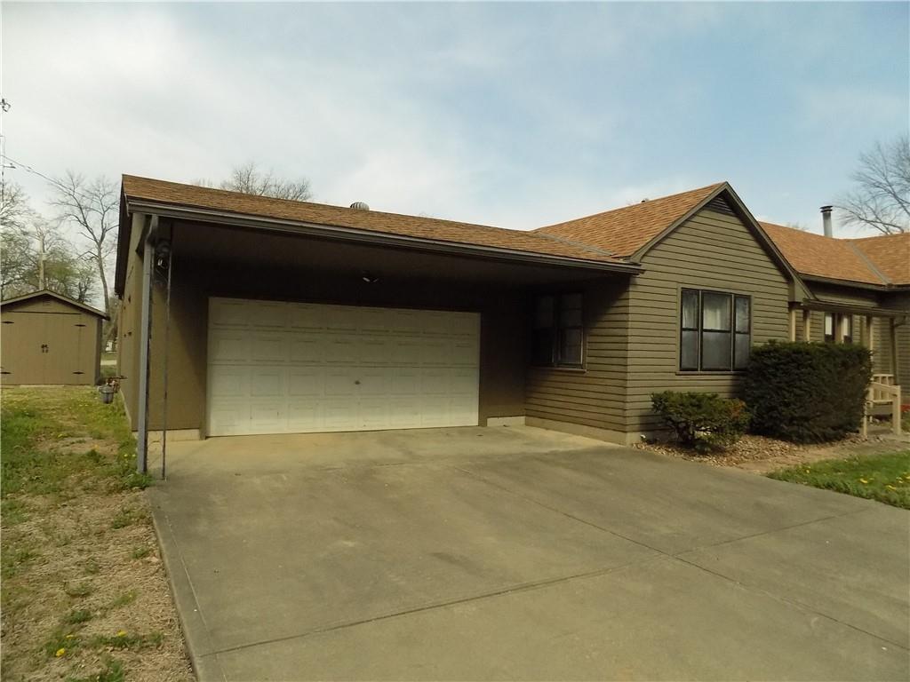 This spacious, updated home offers cozy country living with small town conveniences. It features many improvements: new carpeting and flooring, interior paint, updated baths, smart TV, newer roof, big double garage, rebuilt shed, newer mechanical systems, and plenty of ceiling fans to keep you cool. The kitchen has warm cabinetry and tile flooring and a cozy nook with TV hook-up for your morning coffee. A handy "butler's pantry" nearby offers storage options for the cupboard or appliances. Bedrooms adjoin a completely updated full bath with double vanity, tub/bath and additional low entry shower. There is a non-conforming bedroom (no closet) with a half bath and second laundry area which could easily be remodeled adding a closet and/or full bath. The living areas are adaptable to your lifestyle, with an electric heat fireplace insert and smart TV above. Mini-split HVACs and ceilings fans keep every area comfortable. Entry on the east is into a versatile room with new carpet that can be a playroom, office, exercise room, or to suit your needs. Situated on a double lot, there's room for gardening, play area, landscaping, or pets. Garage has plenty of room for vehicles or to include a work shop. An additional workroom can be a gardener or handyman's hang-out. Your lawn tractor will fit perfectly in the up-dated shed. Decks/porches on both sides provide relaxing areas for enjoying the outdoors or watching the world roll by. Located just one mile off I-49, it's an easy commute to the metropolitan area for work or shopping or heading to the lake for camping and fishing. Come tour this gem of small town America.